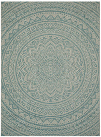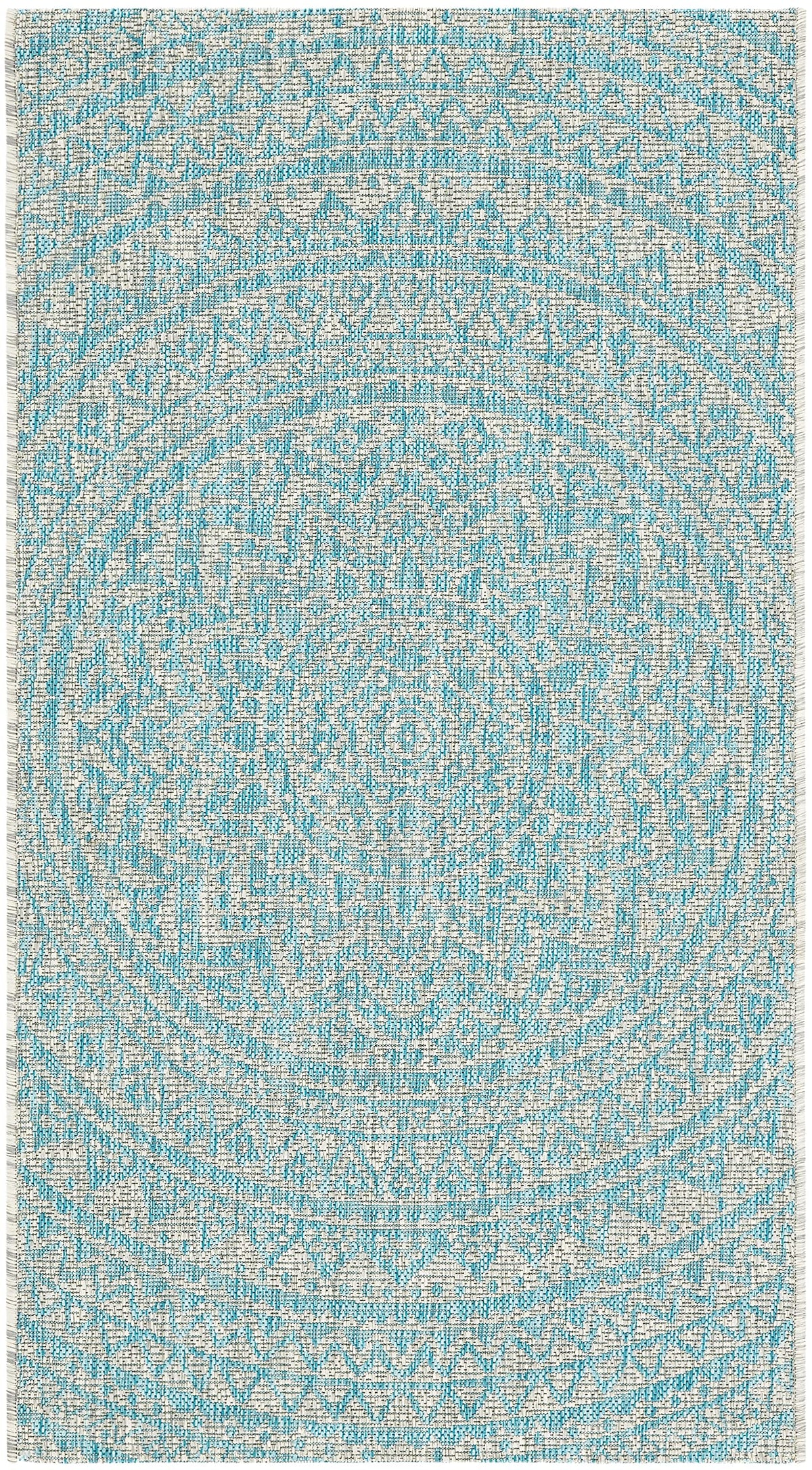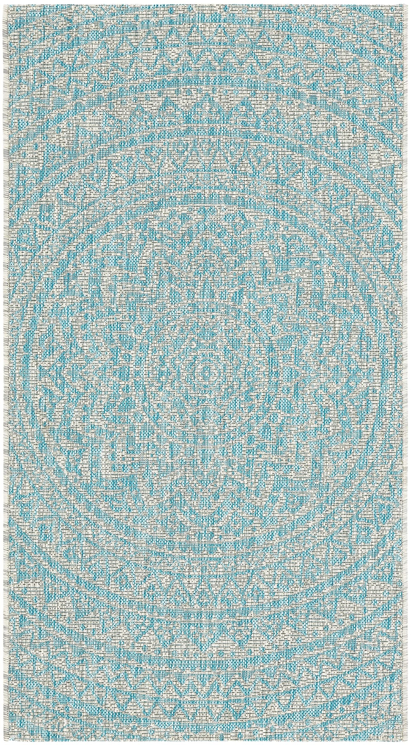 Safavieh Courtyard Collection 2'7' X 5' Grey / Aqua Cy8734 Indoor/ Outside Waterproof Easy Cleansingpatio Backyard Mudroom Area Mat