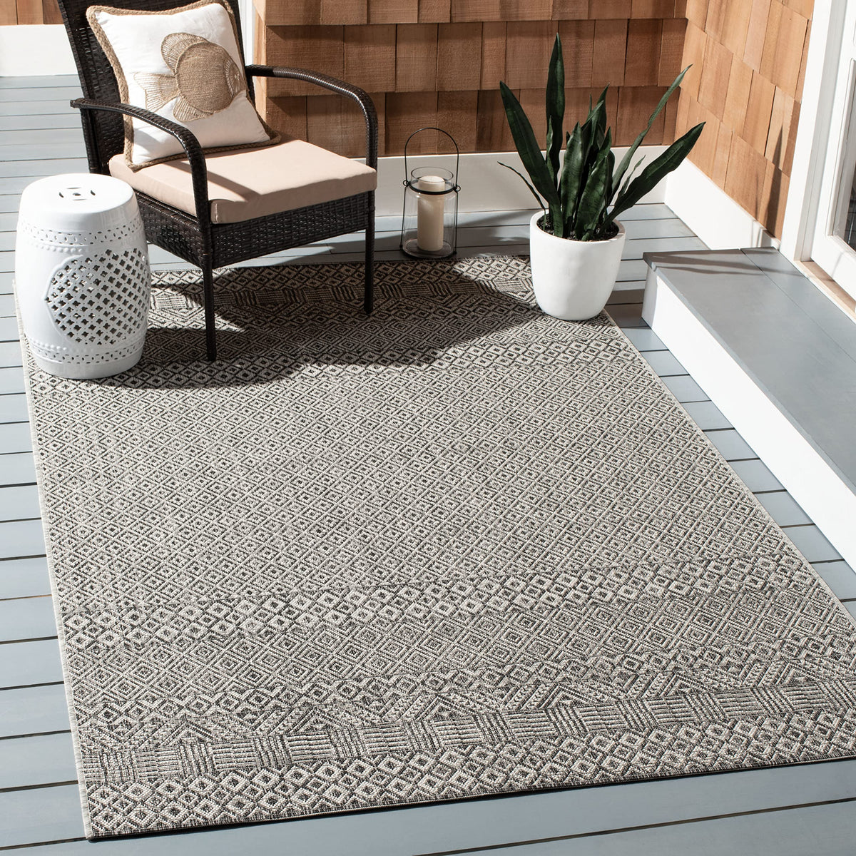 Perfect for any backyard, patio, deck, or poolside, this stylish rug from the Courtyard Collection is a practical addition to any outdoor or indoor living space. Conveniently pet and kid-friendly, this easy-care rug is also well-suited for high-traffic areas. This beautiful rug collection takes outdoor decorating to the next level with new designs in fashion-forward colors, and patterns from classic to contemporary.