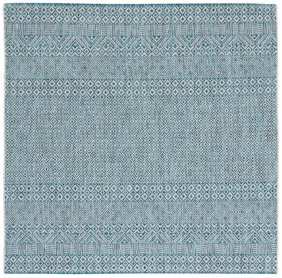 Safavieh Courtyard Collection 6'7' Square Grey/Aqua Cy8235 Indoor/ Outside Waterproof Easy Cleansingpatio Backyard Mudroom Area Mat