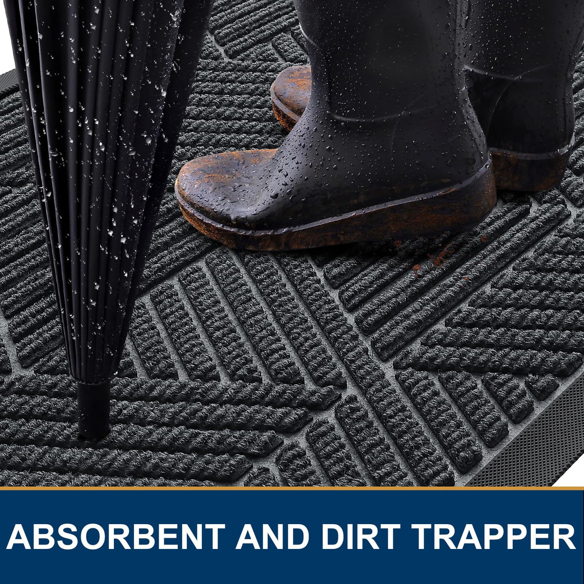 Smiry Front Door Mat Outside Entrance, Heavy Duty Natural Rubber Mat, Sturdy Trap Dirt And Moisture Indoor Outdoor Door Mat, Easy Clean Low Profile Doormat Outdoor Entrance, 29.5X17 Inch, Grey