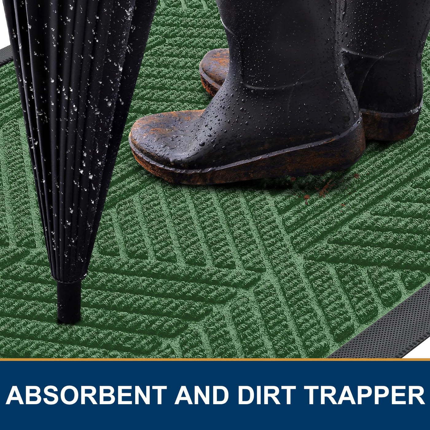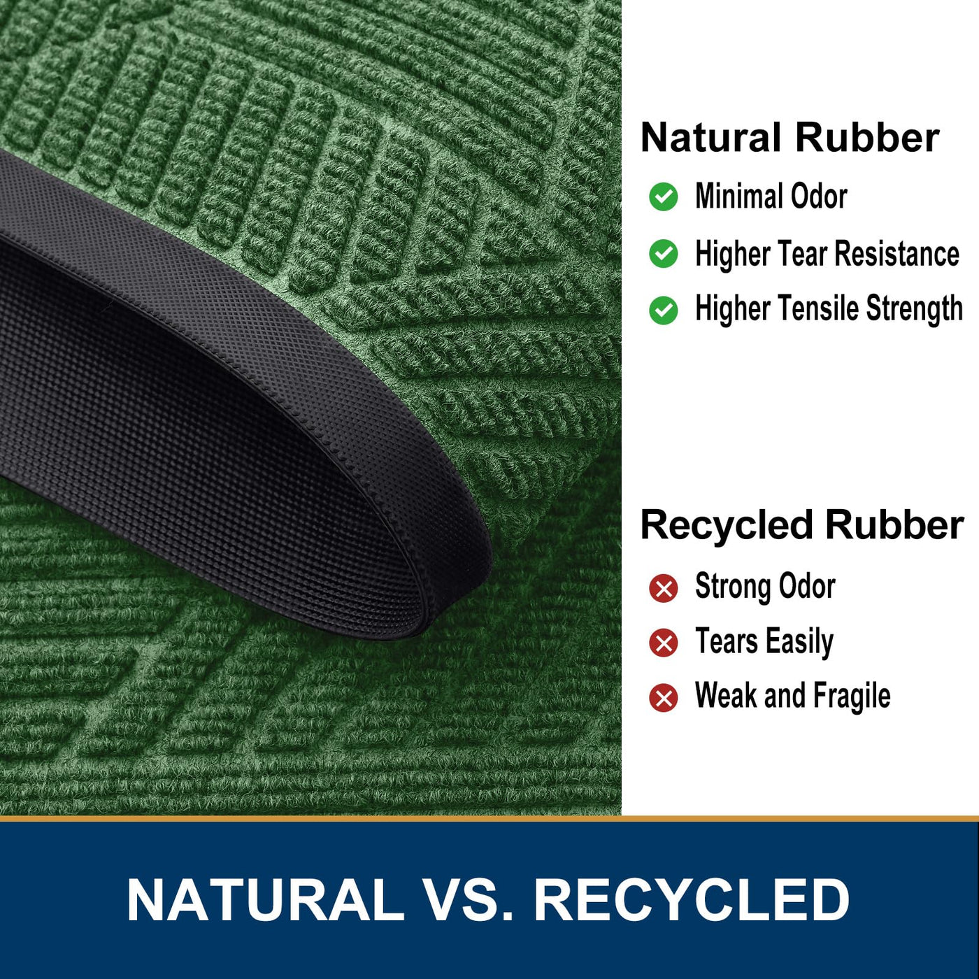 Smiry Front Door Mat Outside Entrance, Heavy Duty Natural Rubber Mat, Sturdy Trap Dirt And Moisture Indoor Outdoor Door Mat, Easy Clean Low Profile Doormat Outdoor Entrance, 36X24 Inch, Green