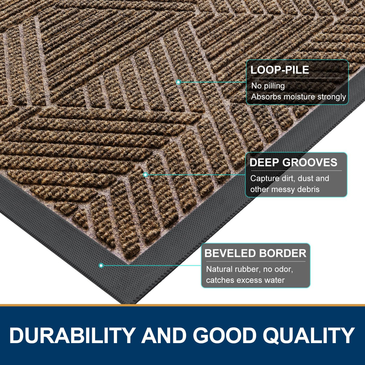Smiry Front Door Mat Outside Entrance, Heavy Duty Sturdy Natural Rubber Doormat, Trap Dirt And Moisture, Easy Clean Low Profile Welcome Floor Mats For Indoor Outdoor Entry, 29.5X17 Inch, Brown