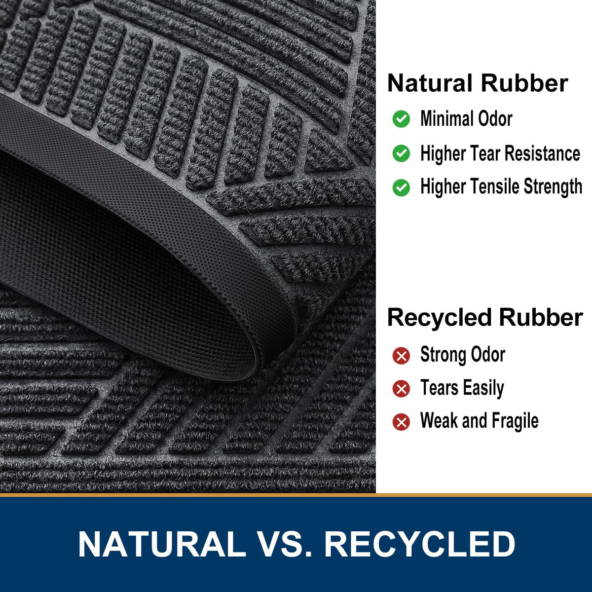 Smiry Front Door Mat Outside Entrance, Heavy Duty Sturdy Natural Rubber Doormat, Trap Dirt And Moisture, Easy Clean Low Profile Welcome Floor Mats For Indoor Outdoor Entry, 36X24 Inch, Grey