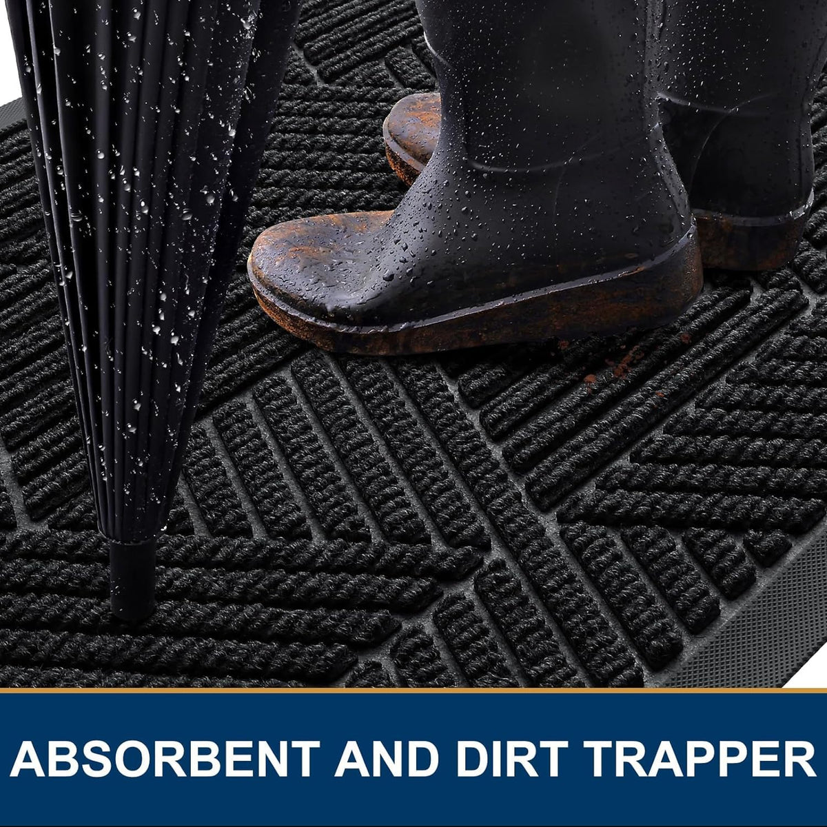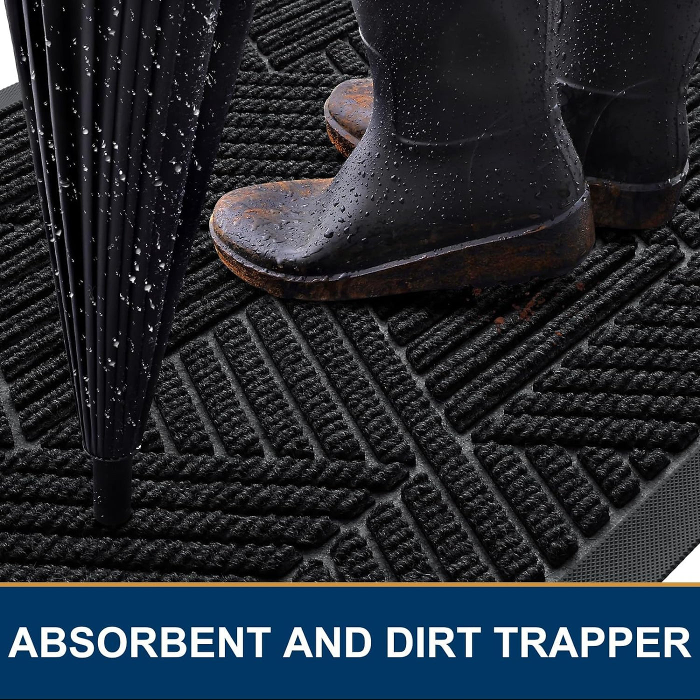 Smiry Front Door Mat Outside Entrance, Heavy Duty Sturdy Natural Rubber Doormat, Trap Dirt And Moisture, Easy Clean Low Profile Welcome Floor Mats For Indoor Outdoor Entry, 47X24 Inch, Black