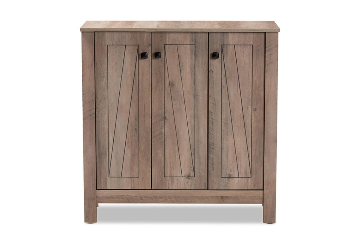 Baxton Studio Derek Modern and Contemporary Transitional Natural Oak Finished Wood 3-Door Shoe Cabinet