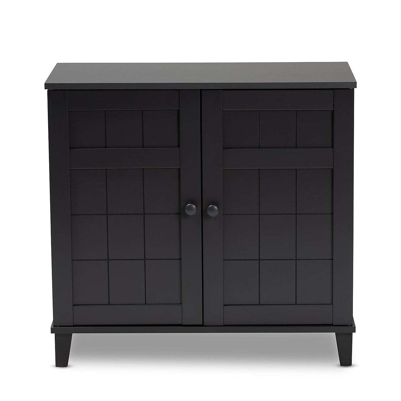 Featuring A Classic Design And Ample Storage Space, The Glidden Shoe Cabinet Is A Stylish Option To Keep Your Entryway Organized. Two Doors Conceal Four Fixed Shelves With Space To Store Multiple Pairs Of Adult And Children'S Shoes. The Doors Showcase A Recessed Grid Pattern, Adding A Sense Of Visual Depth To Your Space. Tapered Legs Add Refined Style And Provide Elevation To Deter Dust Buildup. Constructed From Engineered Wood, The Glidden Showcases A Sleek Dark Grey Finish That Complements Any Color Scheme. The Glidden Shoe Cabinet Is Made In Malaysia And Requires Assembly.