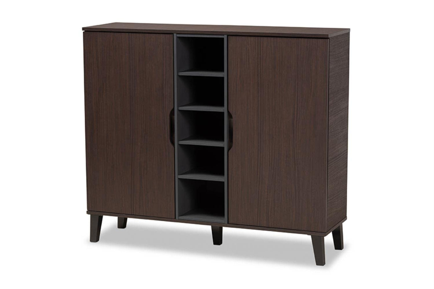 Baxton Studio Idina Mid-Century Modern Two-Tone Dark Brown and Grey Finished Wood 2-Door Shoe Cabinet