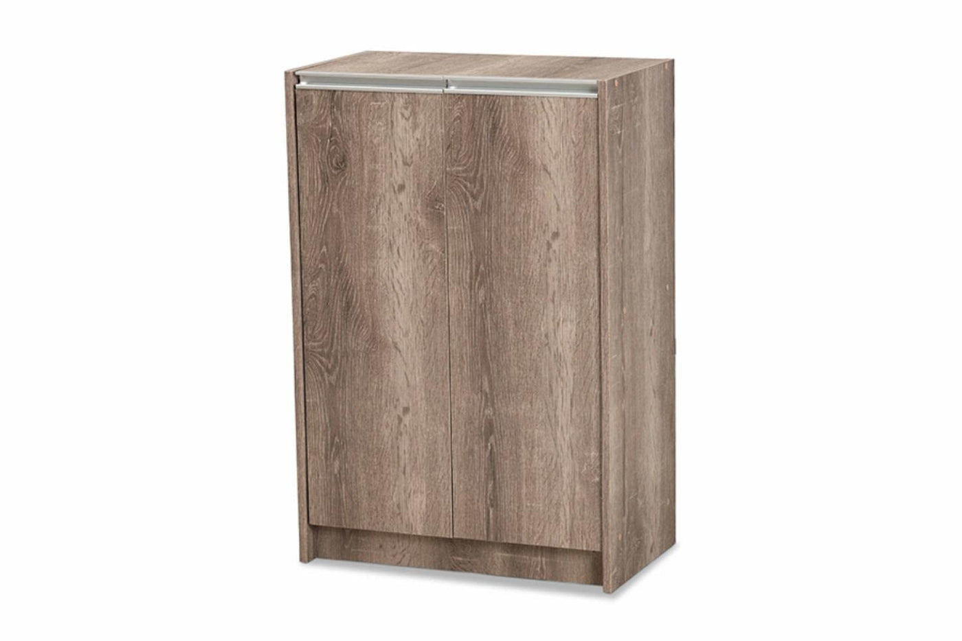 Baxton Studio Langston Modern and Contemporary Weathered Oak Finished Wood 2-Door Shoe Cabinet