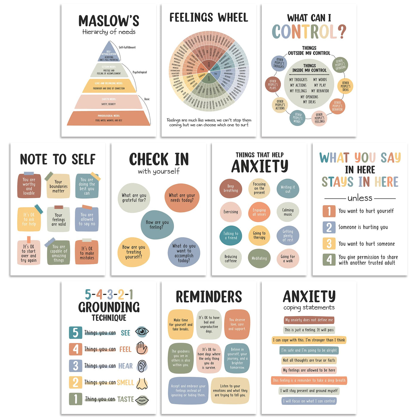 10 Pcs Care Mental Health Posters, Mental Health Matters Poster, Therapy Office Decor, Counseling Office Must Haves, School Coun