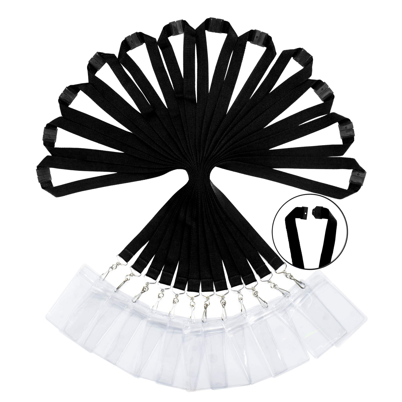 12 Pack Breakaway Lanyards With Id Badge Holder&Breakaway Clasp Neck Strap For Schools, Cruise, Office, Kids, Black