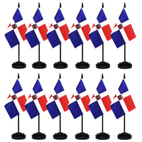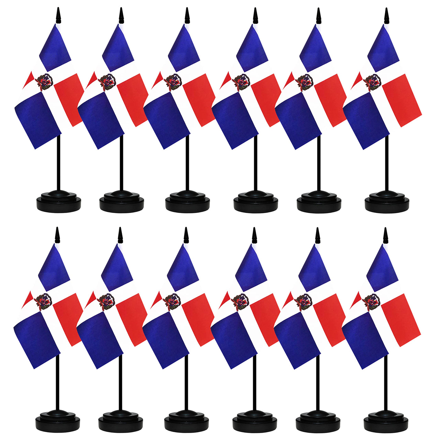 12 Pack Dominica Desk Flags Set, Dominican Small Mini Table Office Flags With 12' Solid Black Pole, 8.2 X 5.5 Inches, Home And