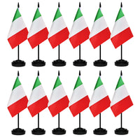 12 Pack Italy Desk Flags Set, Italian Small Mini Table Office Flags With 12' Solid Black Pole, Black Base And Spear Top, Miniat