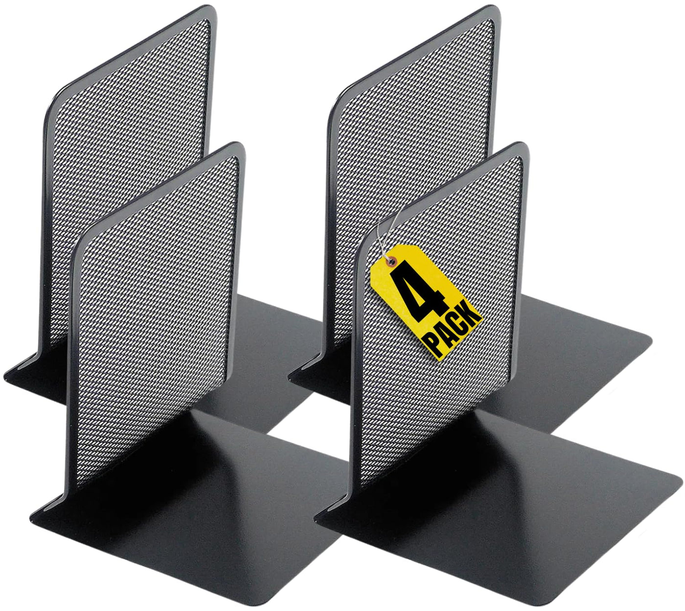 1Intheoffice Bookends, 5.71' Wire Mesh Book End, Matte Black, Each, 2 Packdisplay Books Upright And Create A Professional Presentation With This 1Intheoffice Black Wire Mesh Bookend. Give Reference Materials A Stable Home With This Black Mesh Bookend. Reinforced Metal Provides Strength And Durability To Keep Books Sandwiched Between The Two Panels, While The Sturdy Base Prevents Binders And Notebooks From Tipping Over. This 1Intheoffice Black Mesh Bookend Features Flat Square-Rounded Edges For A Seamless Appearance On A Desktop Or Bookshelf.? Book End With Sturdy Base Construction With Mesh Panels Keeps Books Stable And Upright For Easy Access?&Nbsp;Elegant Look Of Mesh Screens Made Of Wire In Matte Black?&Nbsp;Dimensions: 5.63'H X 5.71'W X 7.4'D?&Nbsp;All Mesh Accessories Have Flat Square-Rounded Edges, Offering A Sleeker Design Aesthetic And A More Cohesive Collection?;Save By The Pack: Comes In Two Sets Of Book Ends