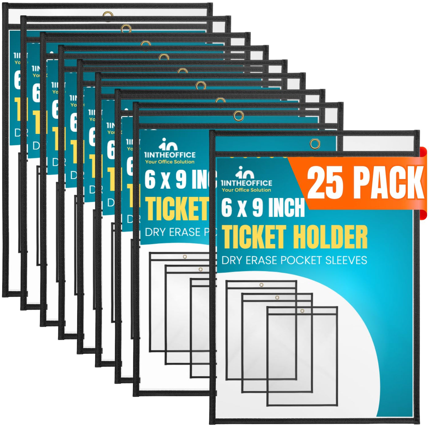 1Intheoffice Job Ticket Holders 6X9, Heavy Duty, Clear Black Sleeves Shop Ticket Holders 6'X 9' Dry Erase Pocket Sleeves, 25/Packstore Work Orders, Pricing Sheets, Or Repair Requests In These 6 X 9-Inch Vinyl Job Ticket Holders. Assign Repair Work To Inventory Or Customer Orders With These Vinyl Job Ticket Holders. Reinforced Stitched Edges Ensure Long-Lasting Use, While The Clear Vinyl Construction Makes Paperwork Easy To Read While Shielding The Pages From Dirt And Damage. Each Of These Vinyl Job Ticket Holders Comes With A Top-Mounted Eyelet, So You Can Secure Them To Shelves With Plastic Ties Or String.Product Features:- Stitched Job Ticket Holder Is Perfect For Storing And Protecting Work Orders, Production Schedules, Inventory Cards, Restaurant Menus, And More- Clear Vinyl Construction With Black Stitching Provides Easy Viewing From Both Sides- Stitched, Super Heavyweight Graded Job Ticket Holder With Short-Side Load Orientation And Convenient Eyelet At Top For Hanging- 25 Job Ticket Holders Per Pack- Stores And Protects 6'W X 9'L Papers