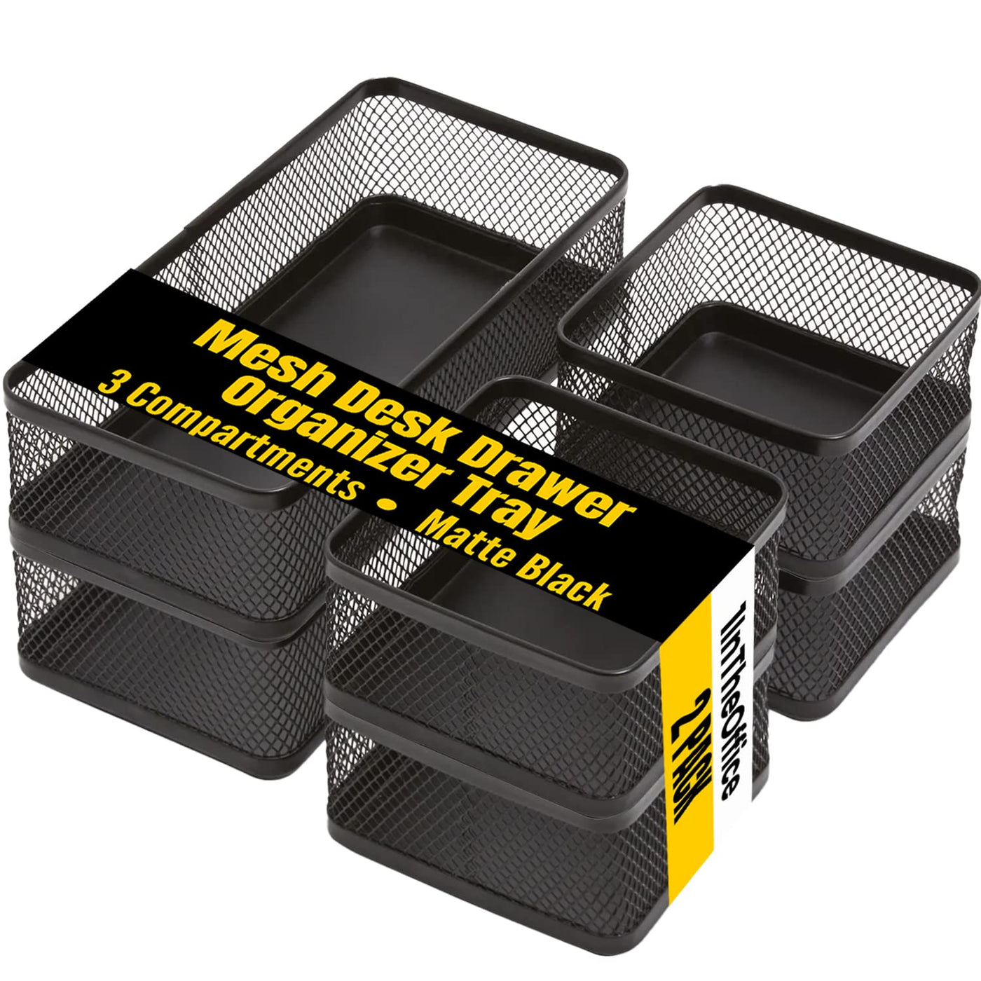 1Intheoffice Mesh Collection Desk Drawer Organizer Tray 3 Compartment - Stackable, Matte Black (2Pack)Revitalize Your Workspace With The 1Intheoffice Mesh Collection Desk Drawer Organizer Tray, A Sleek And Functional Solution For Decluttering Your Desk Drawers. This 2-Pack Of Organizers, In A Stylish Matte Black Finish, Is Designed To Elevate Your Organizational Efforts. The Mesh Collection Ensures Durability And A Modern Aesthetic, While The 3 Compartments Provide Versatile Storage Options For Pens, Stationery, And Small Office Essentials. These Organizers Are Not Only Stackable, Optimizing Your Drawer Space, But Also Boast A Compact Design That Seamlessly Integrates Into Any Desk Or Office Setup. The Matte Black Color Adds A Touch Of Sophistication, Enhancing The Visual Appeal Of Your Workspace. Whether You Are A Professional Seeking A Tidy Desk Or A Student Aiming For Efficient Study Spaces, These Stackable Desk Drawer Organizers Are Essential Tools For Maintaining Order And Enhancing Productivity.- Sleek And Functional Design:Mesh Collection For Durability And A Modern Aesthetic.- 2-Pack For Enhanced Organization:Comes In A Set Of Two Organizers, Providing Ample Storage Solutions.- Matte Black Finish:Stylish Color Choice For A Sophisticated And Modern Look.- 3 Compartments For Versatile Storage:Organize Pens, Stationery, And Small Office Essentials Efficiently.- Stackable Design:Optimizes Drawer Space By Allowing Convenient Stacking.- Compact And Space-Efficient:Seamlessly Integrates Into Any Desk Or Office Setup.- Ideal For Professionals And Students:Enhances Productivity By Maintaining An Organized Workspace.- Essential For Tidy Desks:A Must-Have Tool For Those Seeking An Orderly And Efficient Desk Space.