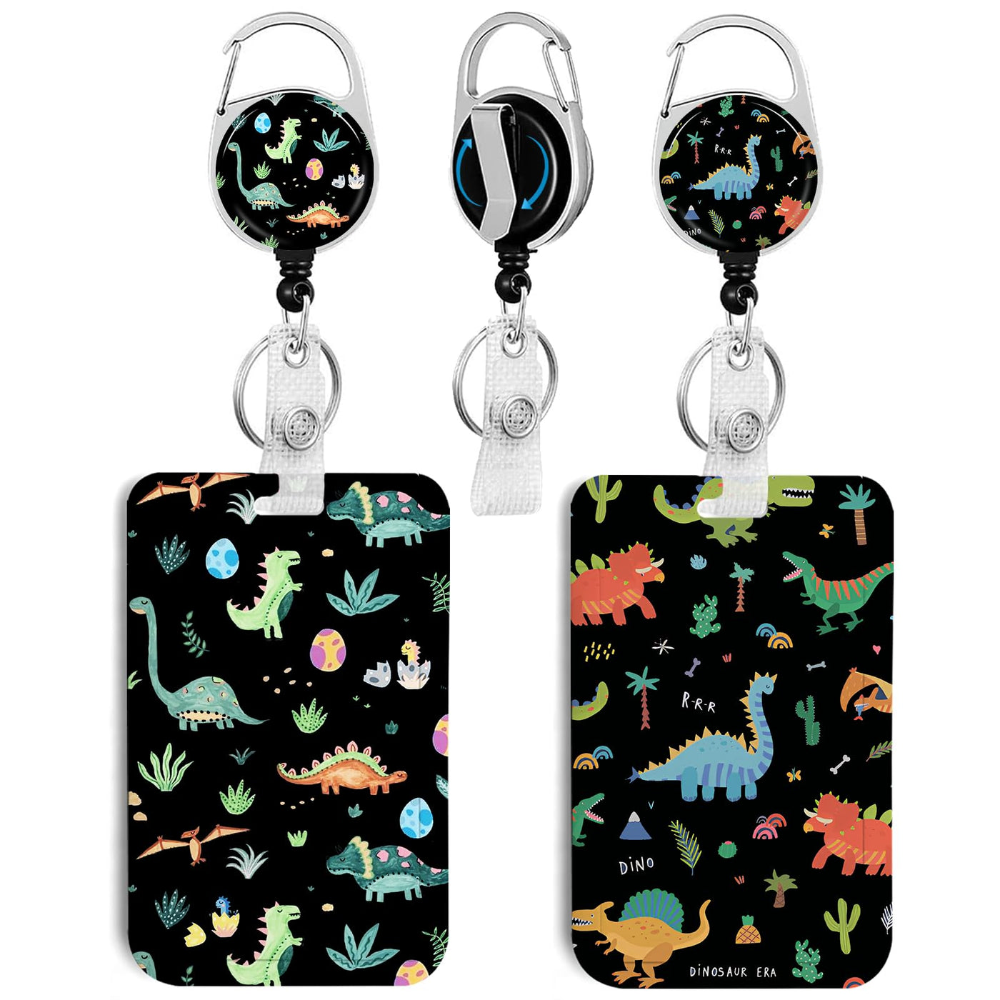 2 Pack Cute Dinosaur Id Badge Holder With Clip Badge Reels Retractable Heavy Duty,Keychain,Id Holder For School Nurse Office