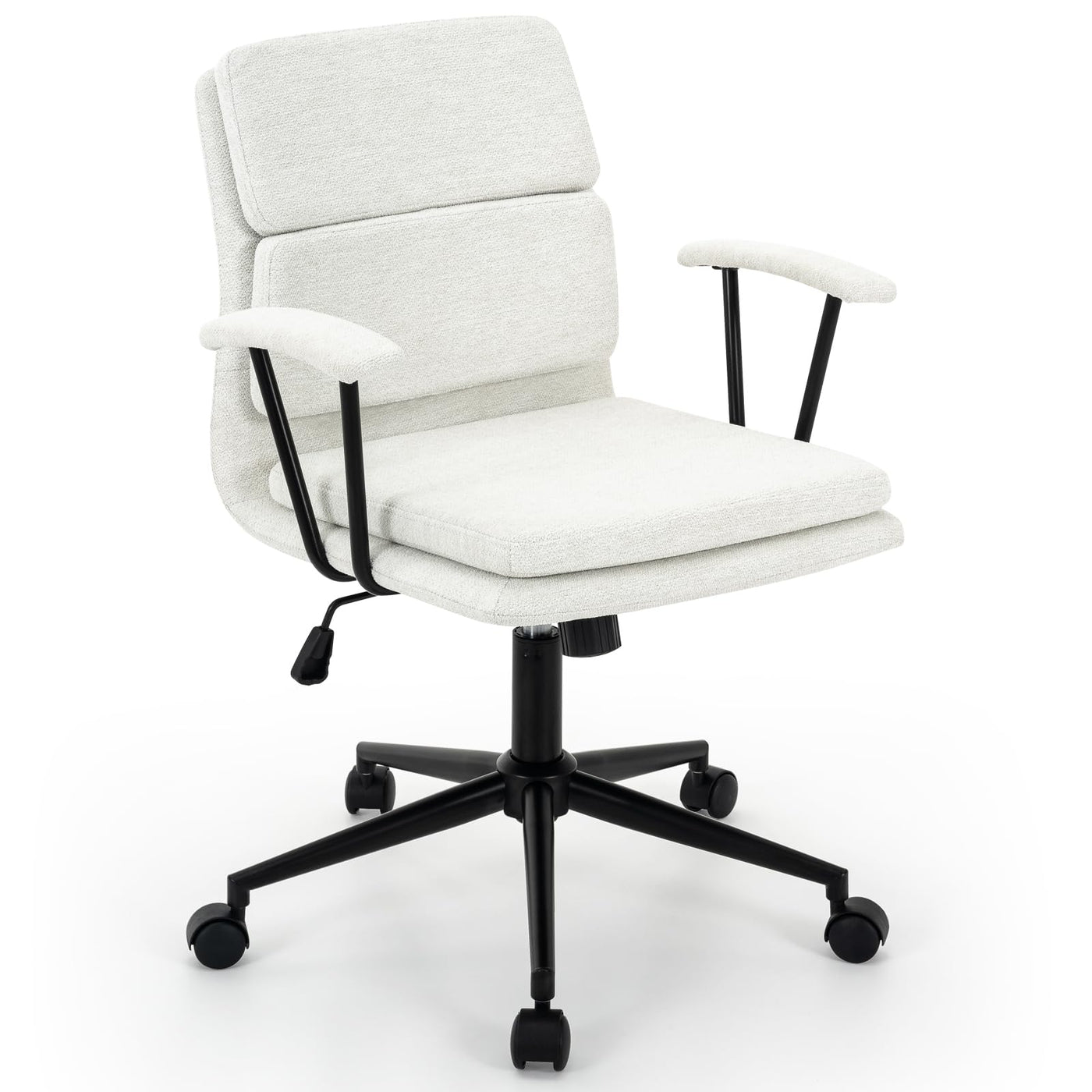 422 Modern Linen Office Chair With Removable Padded Armrests, Premium Double Cushion, 135 Rocking Mid Back Ergonomic Computer Task Chair With Wheels For Home Study&Meeting