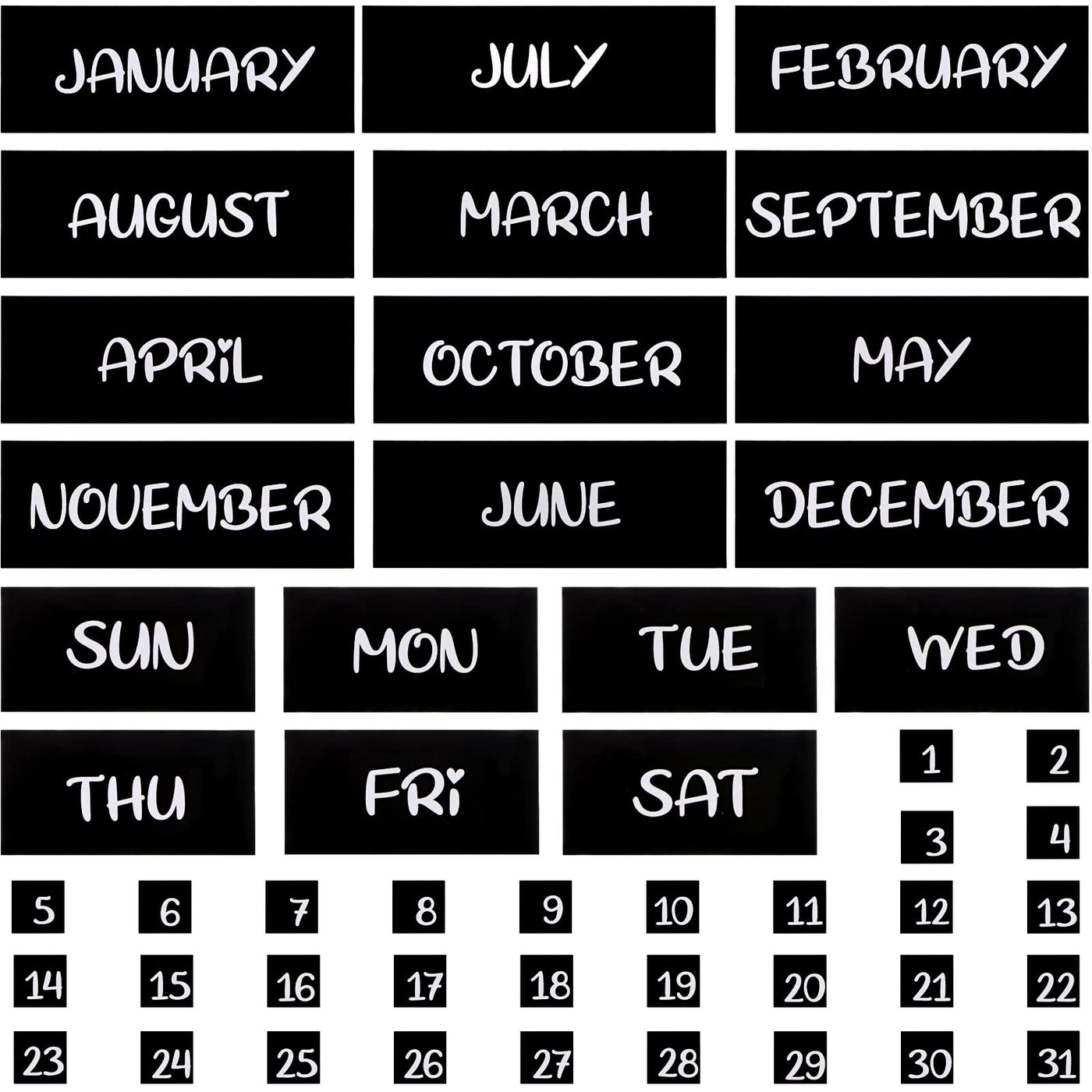 Features 1. Our Package Contains 12 Pieces Of Month Magnets For The Calendar, 7 Pieces Of Weekday Magnets, And 31 Pieces Of Magnetic Numbers, Sufficient For Your Daily Use. 2. They Are Made Of High-Quality Magnet Material With Nice Magnetism, Can Be Easily Applied On Whiteboard And Refrigerator. 3. A Practical And Useful Gift For Your Friends, Families, Or Other People Who Need To Use It. Specifications Material: Magnet Color: Black, White Size: As Shown In Pictures Package Includes: 12 X Month Magnets 7 X Weekday Magnets 31 X Magnetic Numbers