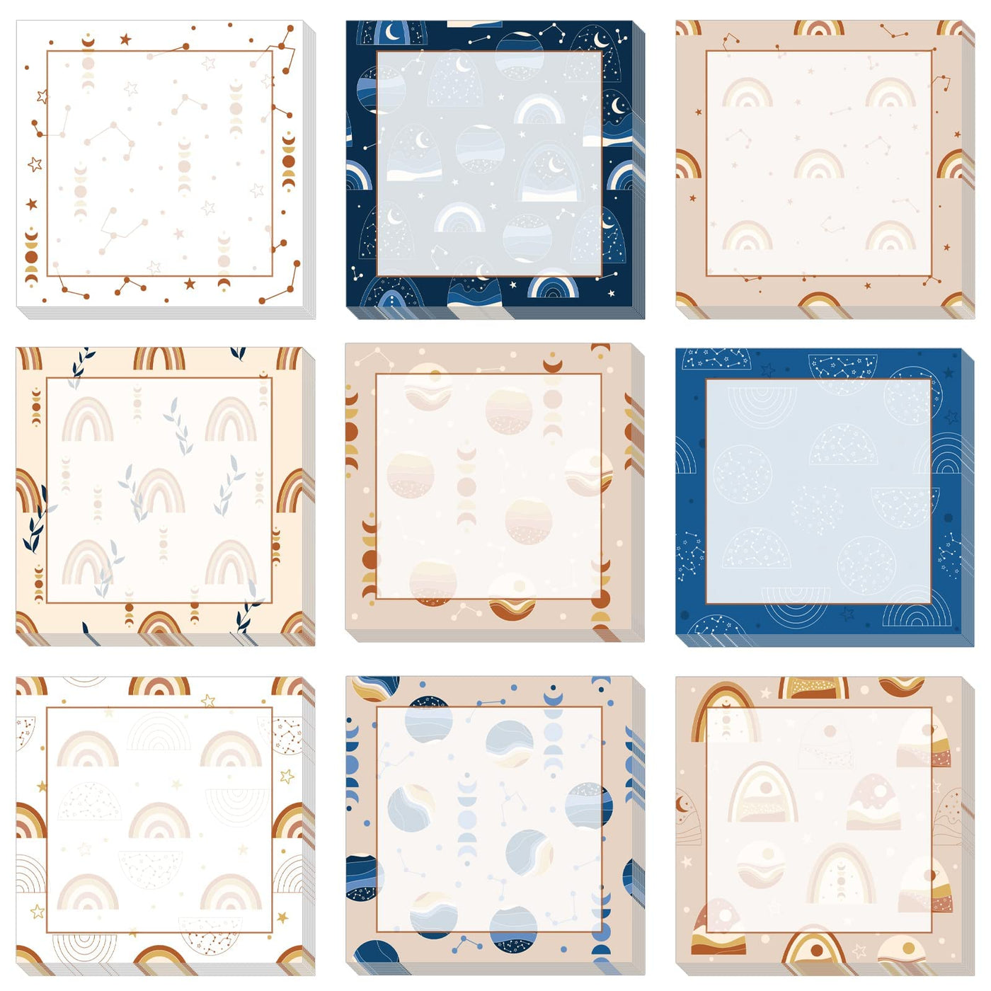 9 Pieces Boho Sticky Notes Boho Rainbow Self-Adhesive Note Pads Sticky Memo Notes For School Office Home Supplies Students Teach