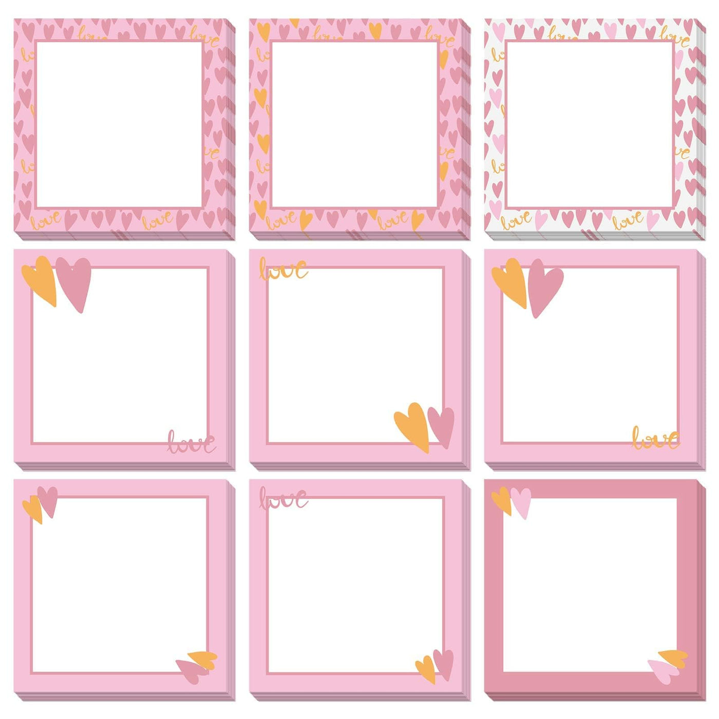 9 Pieces Valentine'S Day Sticky Notes Valentine Heart Sticky Notes Self-Adhesive Note Pads Sticky Memo Notes For School Office H