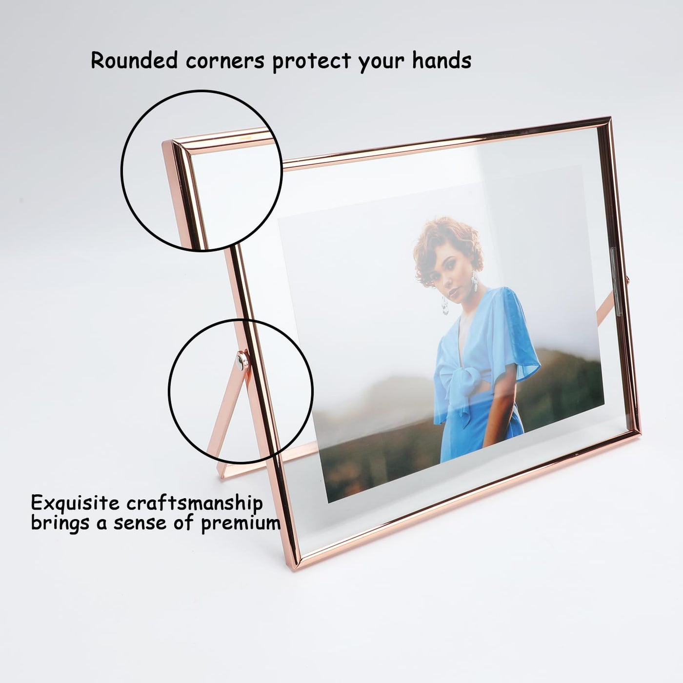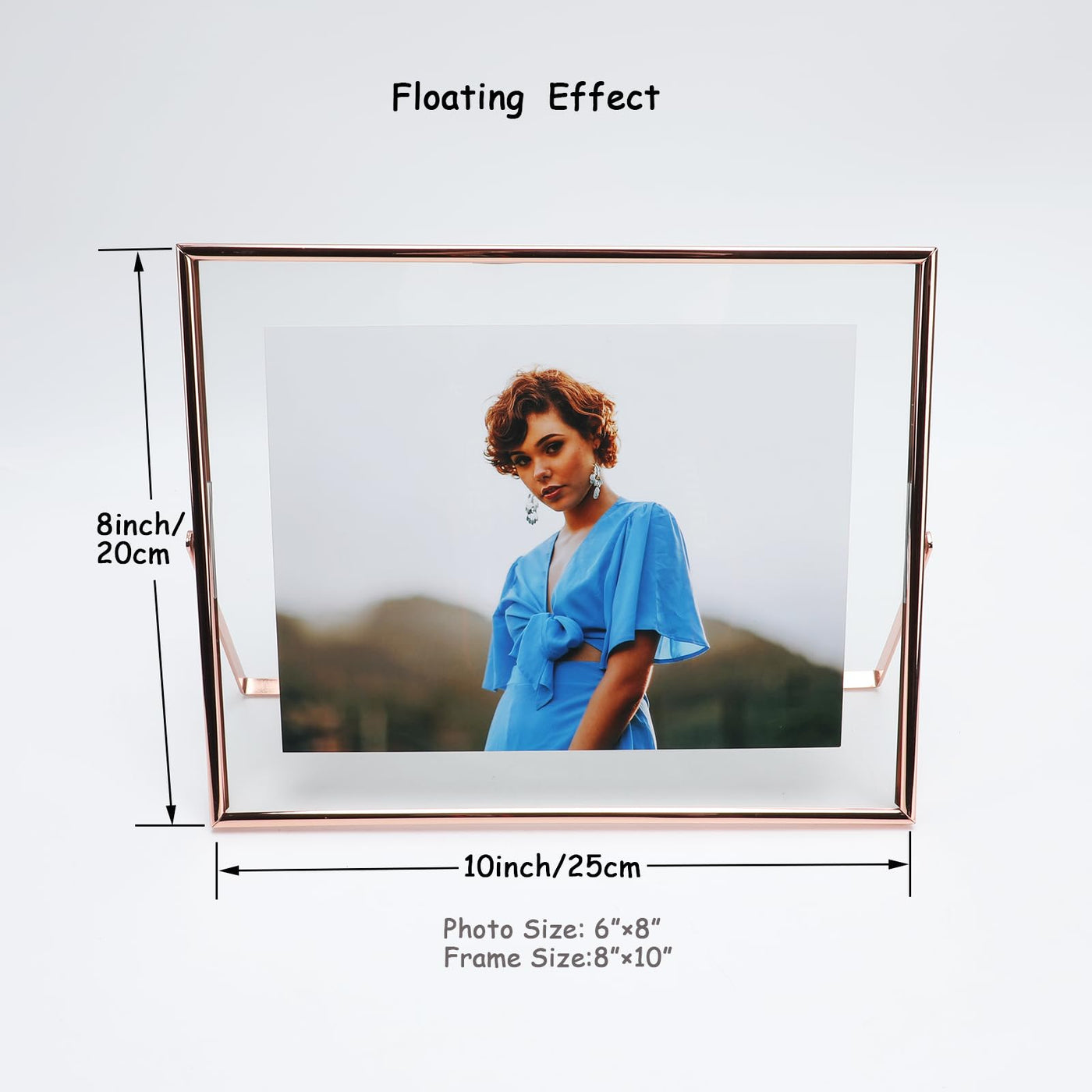 Ahago Rose Gold Floating Frame (8X10 , Horizontal), For Picture 7X9, 6X8, 5X7, Tabletop Shelf Photo Frame, Home Or Office Deco
