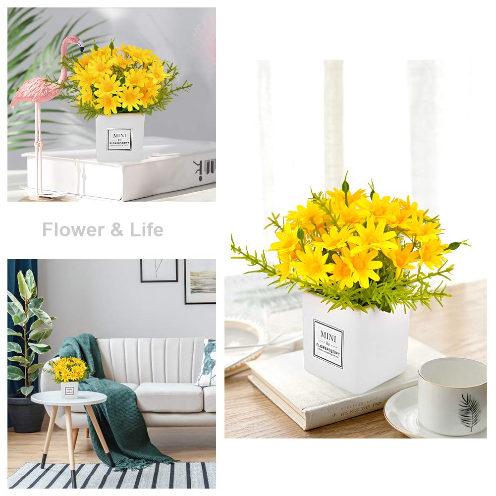 Aifusi Artificial Flowers, Daisy Flower With Vase Silky Artificial Daisies Bouquet Fake Plant Bonsai For Home Office Wedding Dec