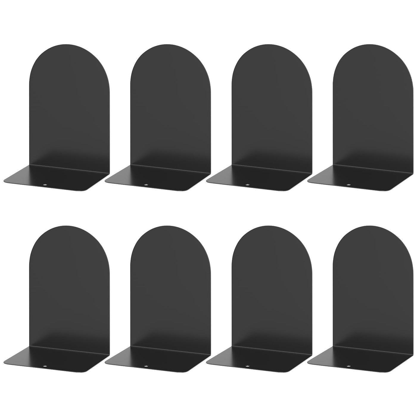 Alotche Metal Bookends - 4 Pairs, Round Design For Shelves & Desk, Black Home Office Book Stoppers