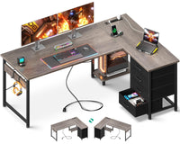 Aodk L Shaped Desk With 4 Tier Drawers, 61' Reversible Gaming Desk With Power Outlets, L Shaped Computer Desk With Usb Charging Port And Host Stand, Home Office Corner Desk, Easy To Assemble, Grey Oak