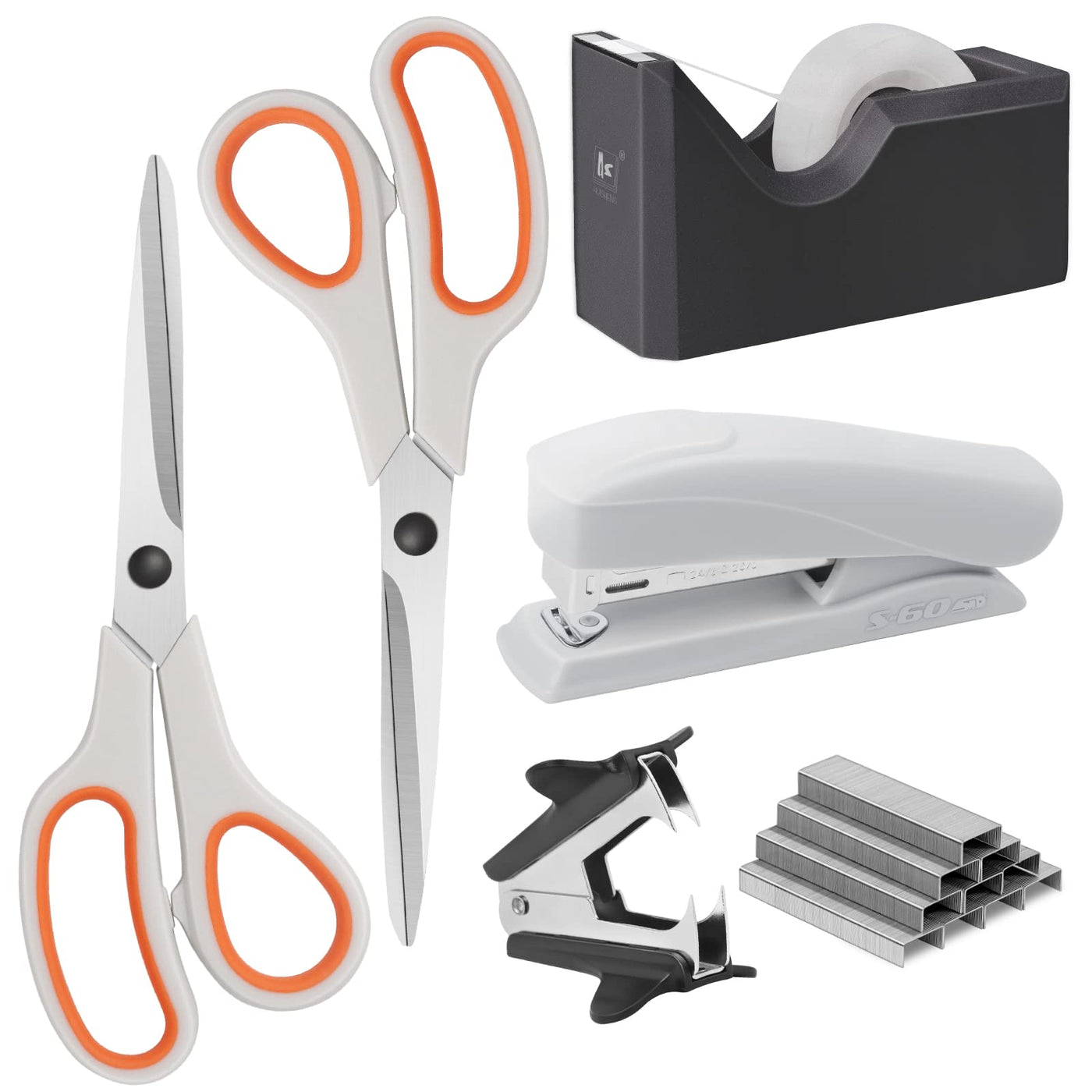 Asdirne Office Supplies Kit, Desk Accessory Set, Including 2 Scissors, 1 Stapler,1000 Pieces 26/6 Staples, 1 Staple Remover, 1 T