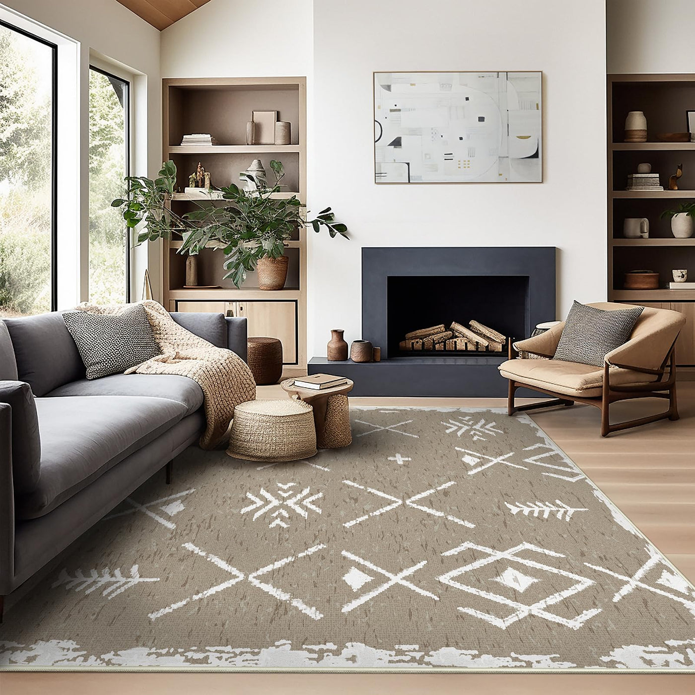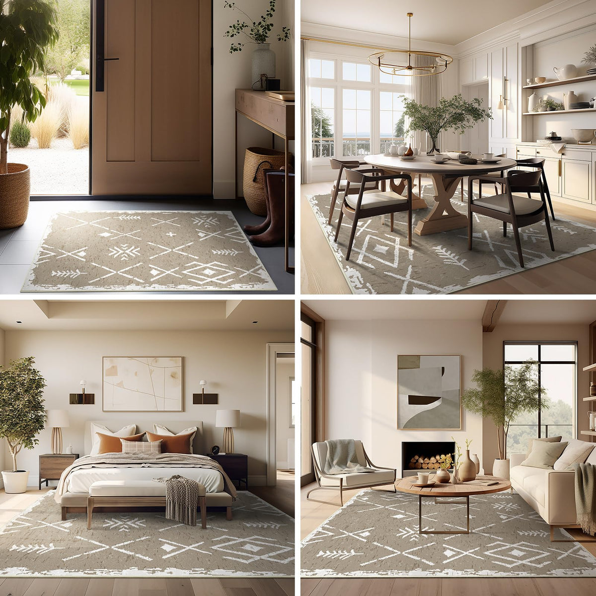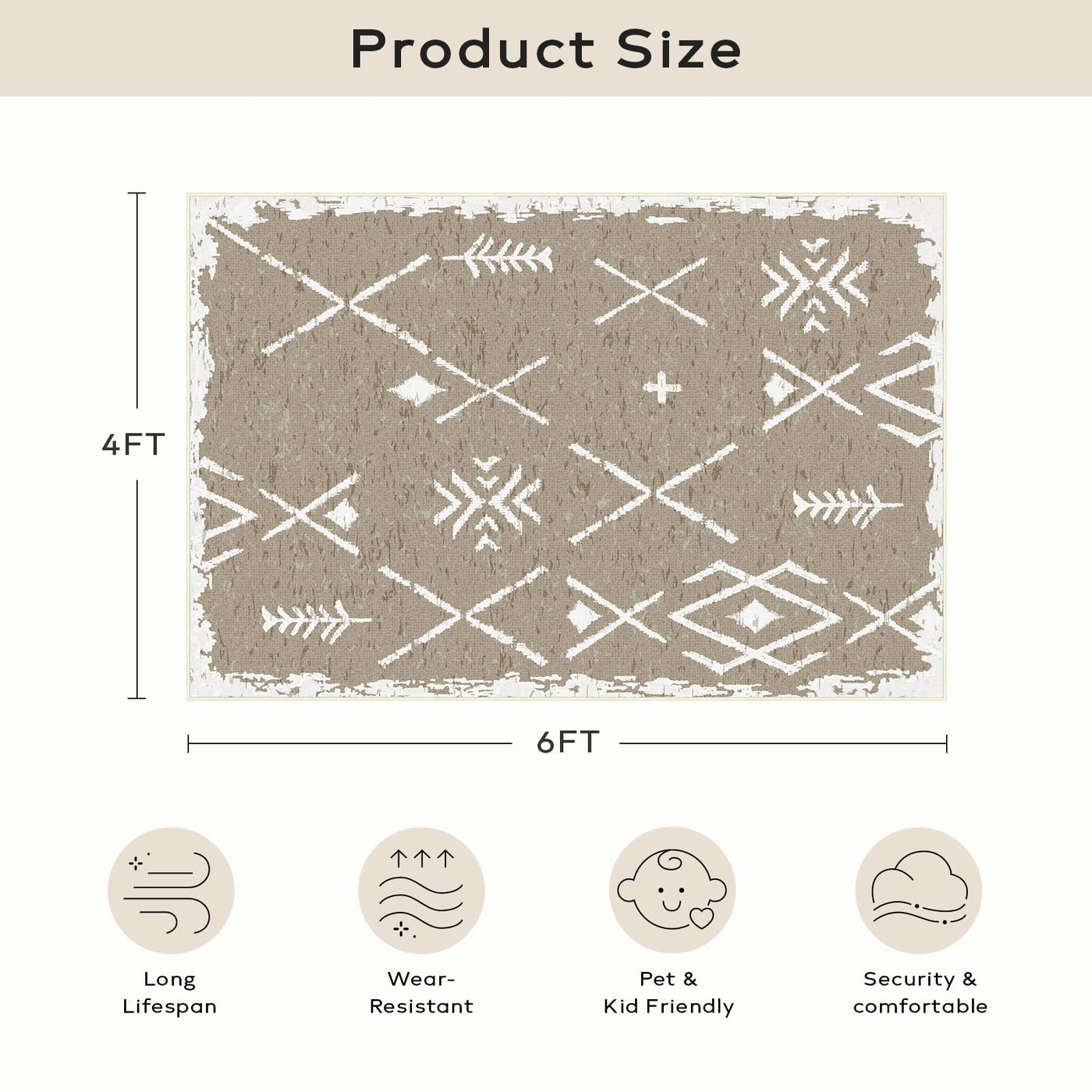 Ashler Abstract Rug, 4X6 Area Rugs, Modern Abstract Area Rug For Living Room, Bedroom, Kitchen Dining Room, Office, Light Brown