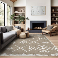 Q: Can the Ashler Abstract Rug be used in outdoor spaces?A: While the Ashler Abstract Rug is designed for indoor use, it can be placed in covered outdoor areas. However, it is best suited for indoor environments like living rooms, kitchens, and offices.
