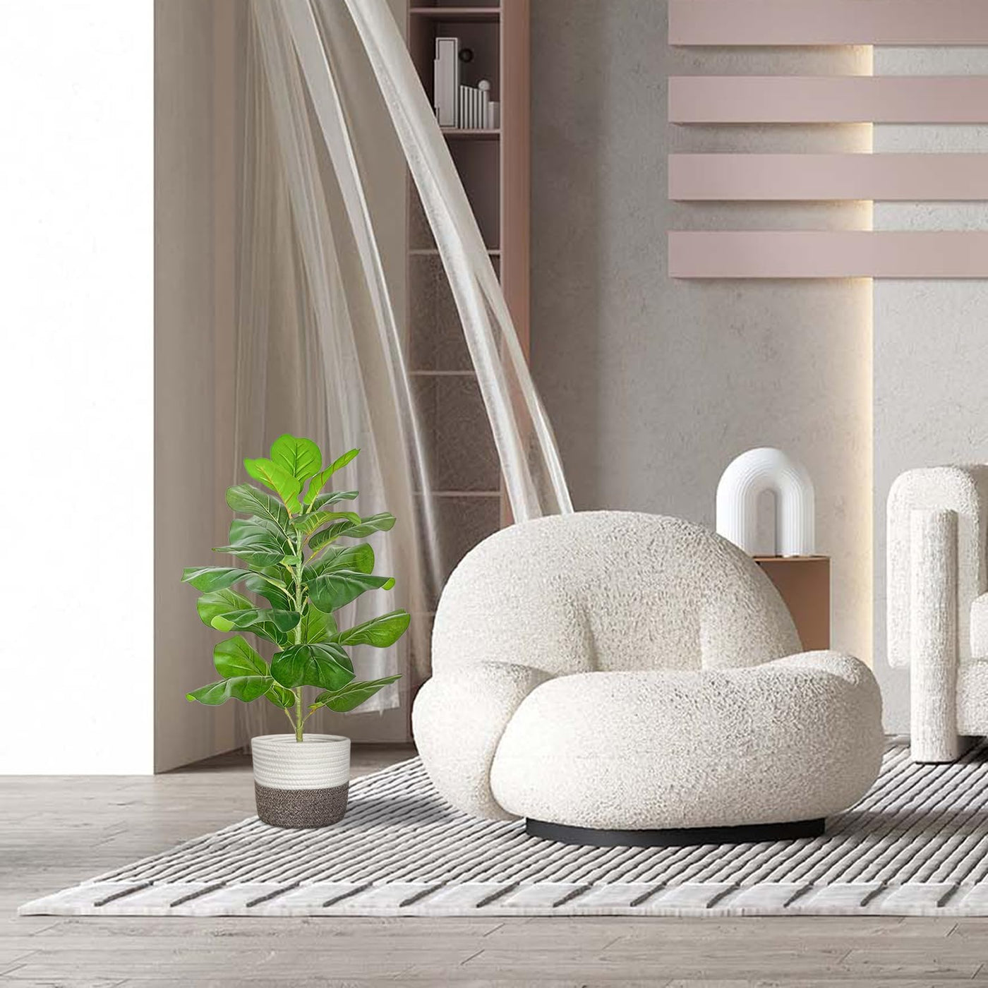 Besamenature Artificial Fiddle Leaf Fig Tree/Faux Ficus Lyrata For Home Office Decoration, 30.5'' Tall, With Cotton Rope Basket