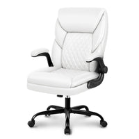 Bestera Executive Leather Office Chair - Ergonomic With Lumbar Support, Adjustable Arms, Swivel & Rocking Function (White)
