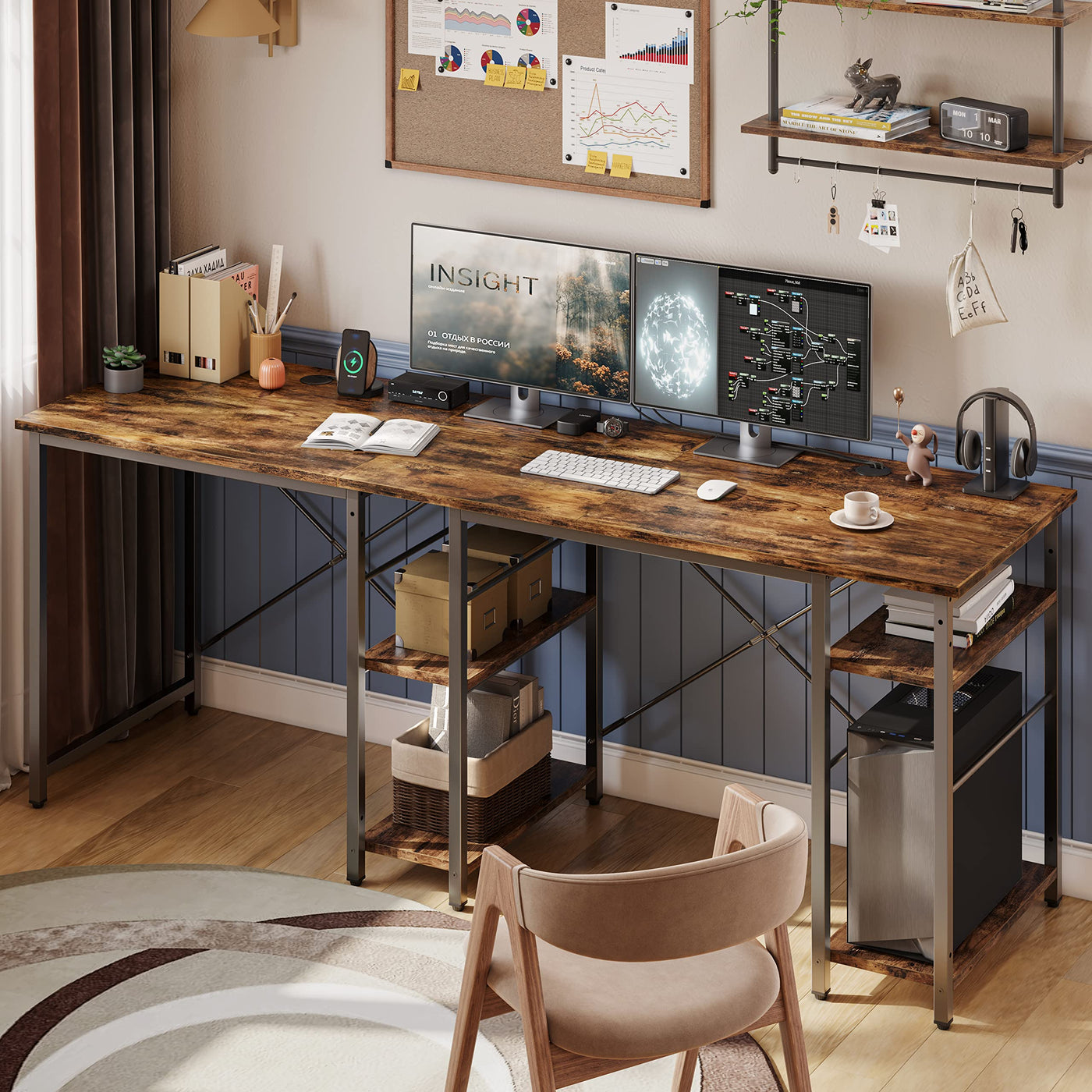 Bestier L Shaped Desk With Shelves 75 Inch Reversible Corner Computer Desk Or 2 Person Long Table, Writing Study Desk For Home Office Small Space Bedroom Apartment, Wash White