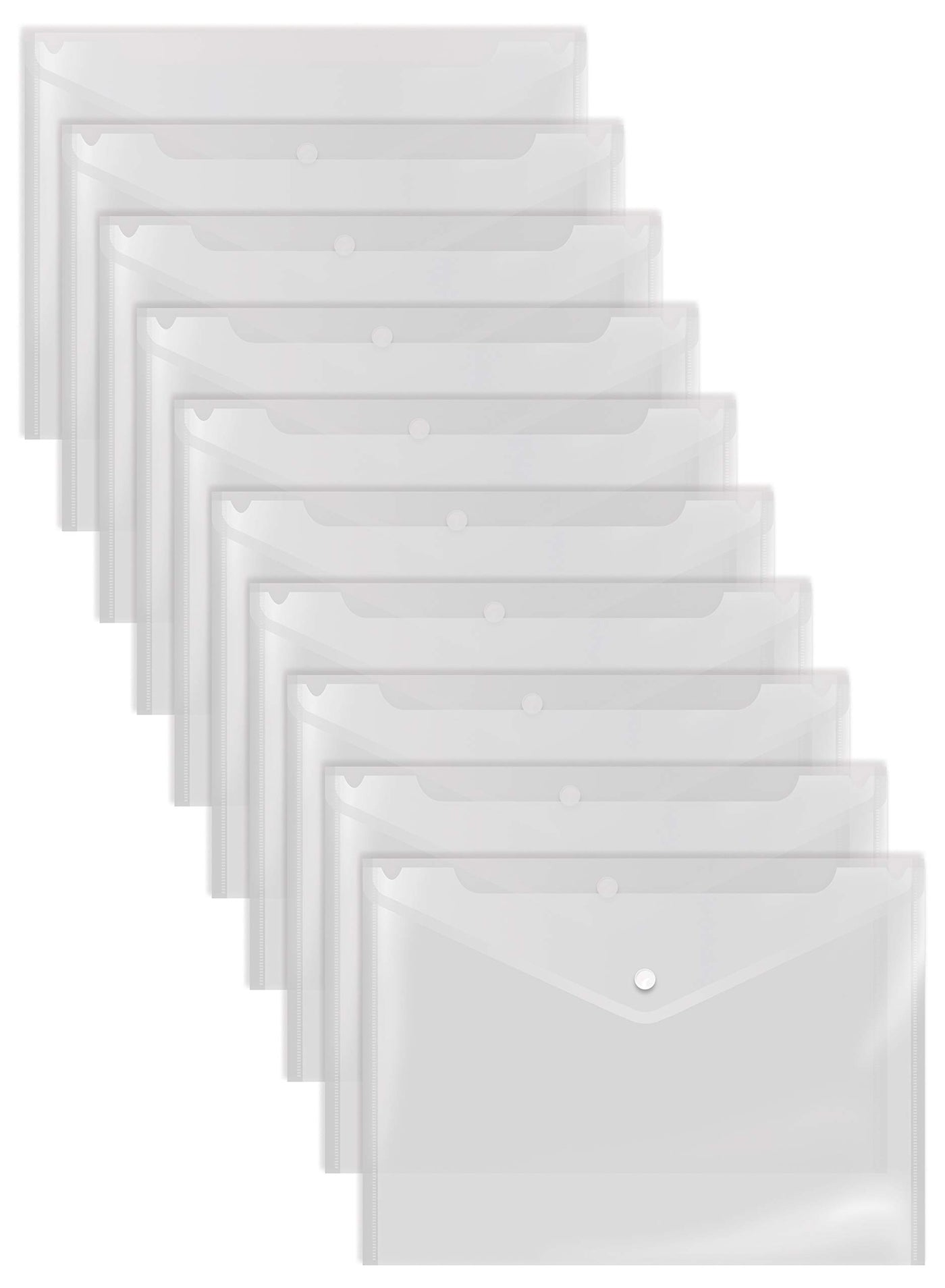 30-Pack Of Clear Plastic Document Envelopes With A Snap Button Closure. Sized At 13.13' X 9.19' With An Opening Flap Along Long Side And Sealed On Three Sides So Documents Stay Secured. A Creased Flap With Button Snap Secures The Contents. Durable, Tear-Resistant, Water-Resistant, And See-Through. Protect Your Documents And Display The Topmost Document To Easily Distinguish Between Files. Mark Up Using A Permanent Marker, And Remove Marks With A Dry Paper Towel. Incorporate Poly Project Pockets Into Your Work Routine For Systematic Organizing Like Never Before.
