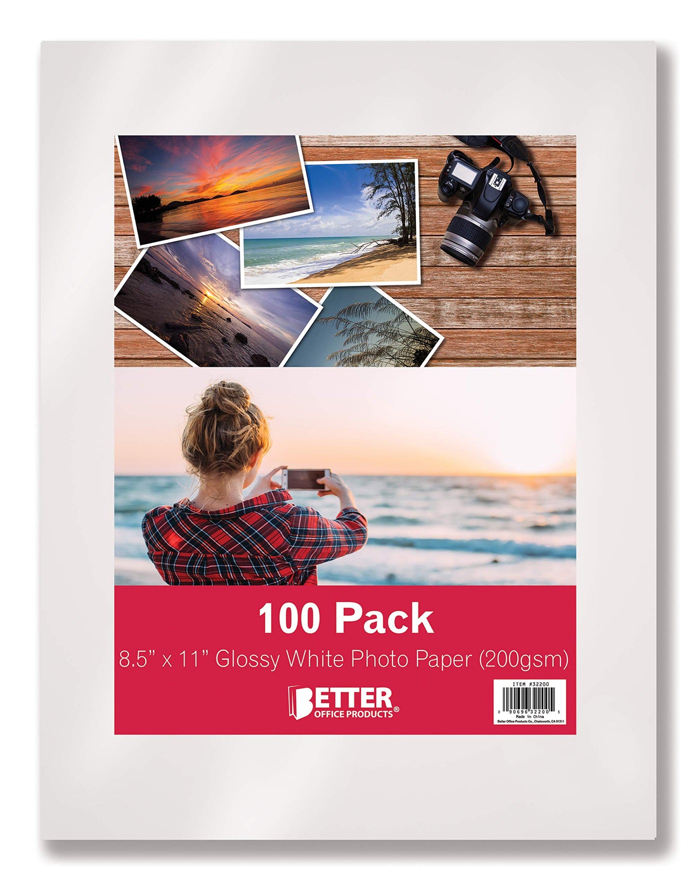 Better Office Products Glossy Photo Paper, 8.5 X 11 Inch, 100 Sheets, 200 Gsm, Letter Size, 100-Count Pack