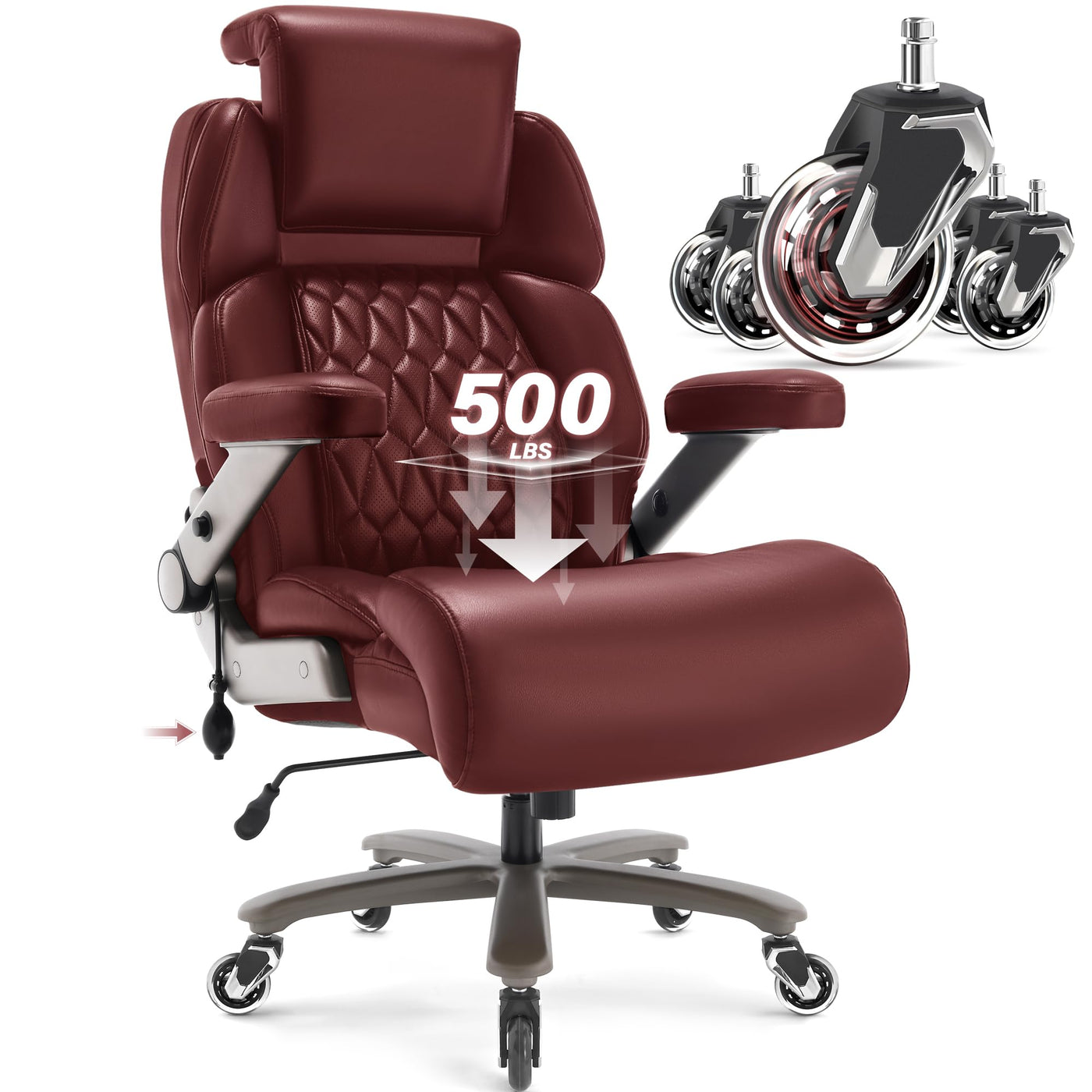 Big And Tall Office Chair 500Lbs - Adjustable Headrest&Lumbar Support, 3D Flip Arms, Large Wheels &Heavy Duty Metal Base, Ergono