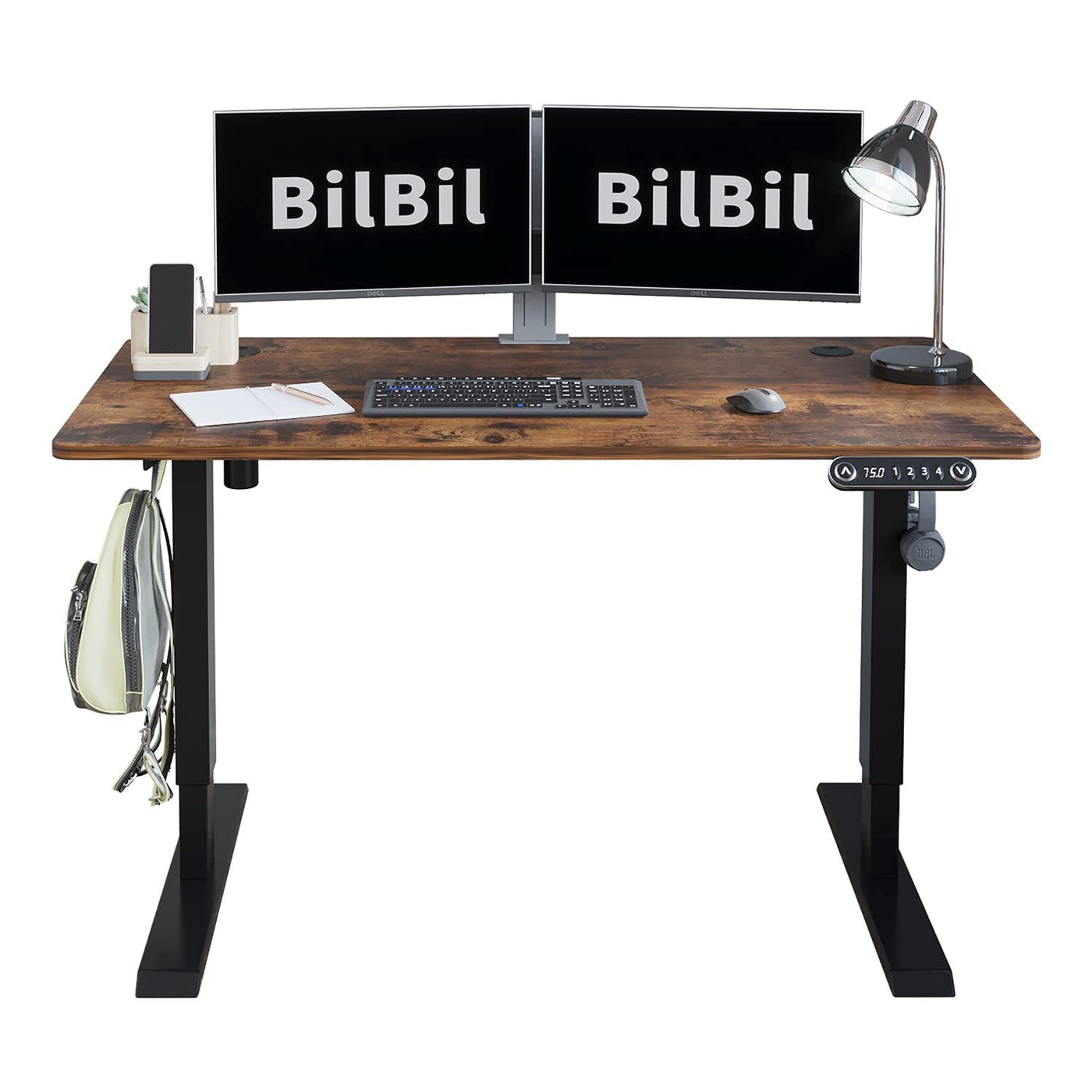 Bilbil Electric Height Adjustable Standing Desk, 48 X 24 Inches Sit To Stand Desk Home Office Desk With Splice Board, Black Frame/Rustic Brown Top