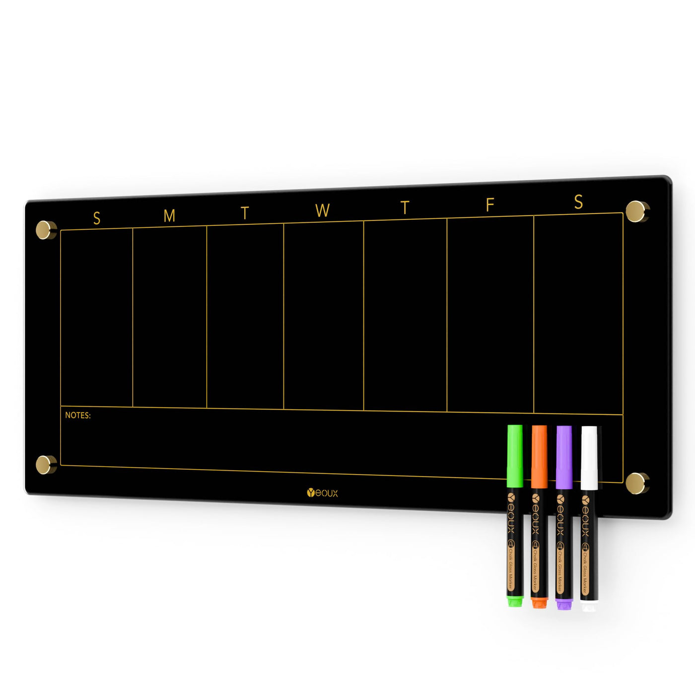 Black Glass Golden Weekly Dry Erase Calendar Whiteboard For Wall, To Do List & 7 Days Planner White Board For Home Office, 23X9.5', 4 Wet Erase Markers Included, Yeoux