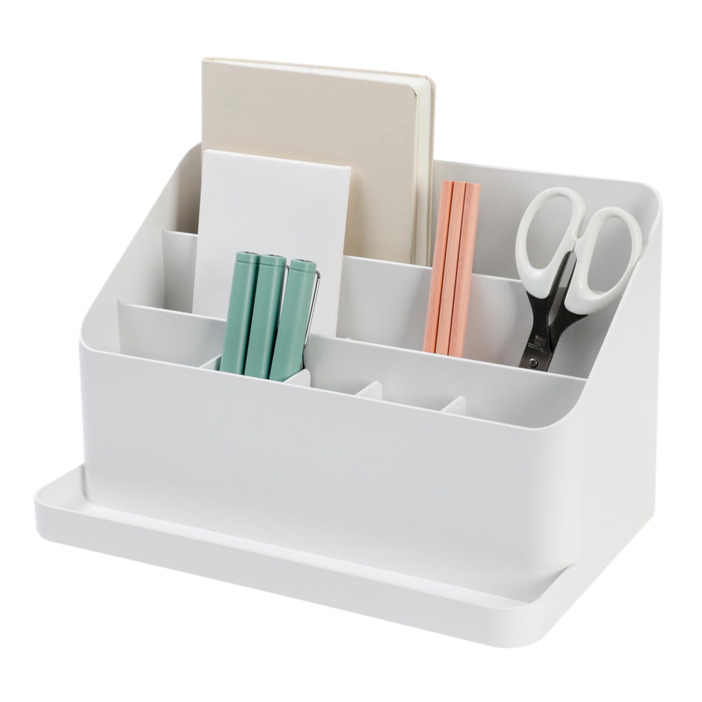 Blue Ginkgo Desk Organizer - Korean-Made Office Storage For Pens, Notes, Mail, And Supplies (White)