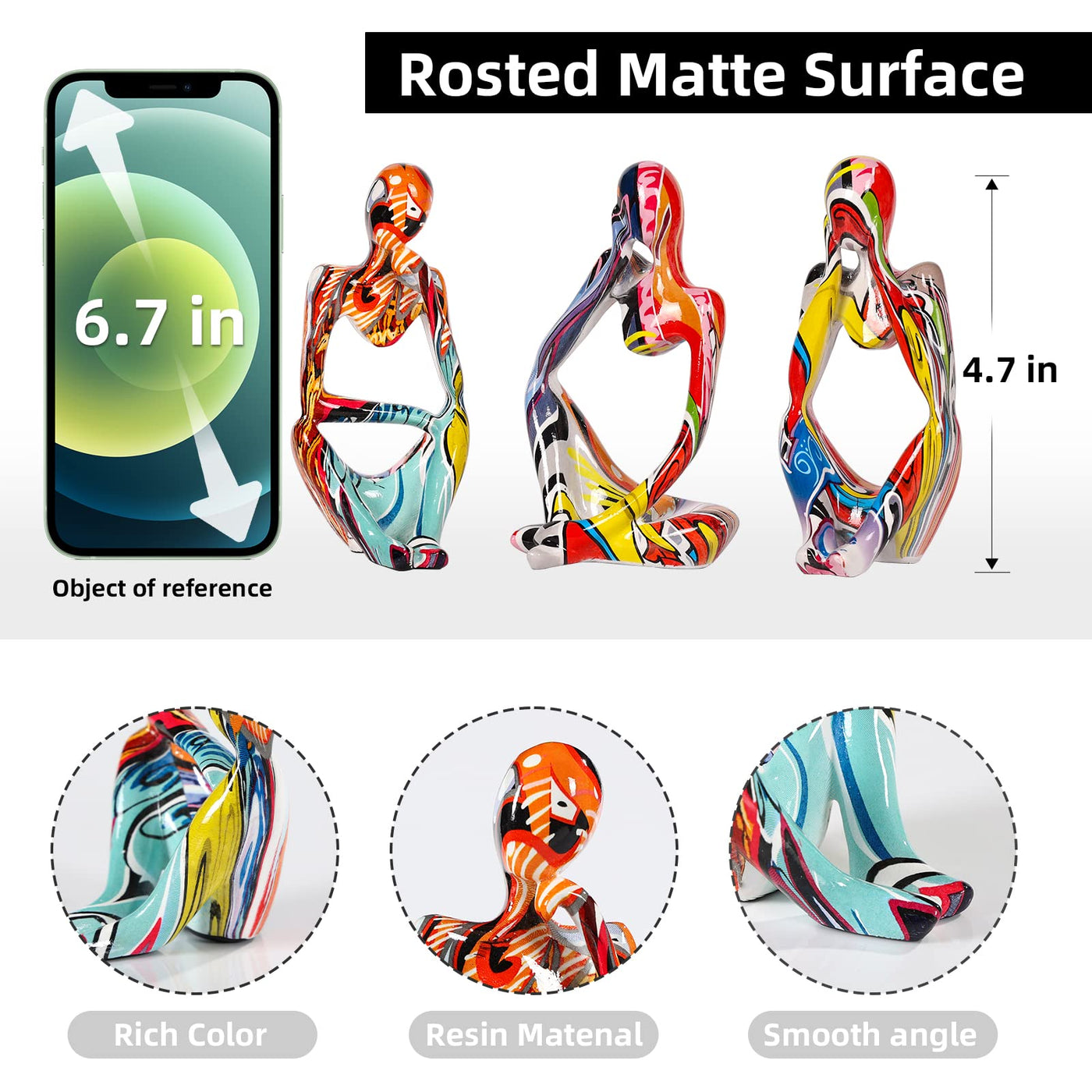 Q: What are the dimensions of the Thinker Statue?A: The dimensions of the Thinker abstract sculpture are 4.7 inches in height and 3 inches in width, making it a perfect size for various display locations like shelves, desks, or mantelpieces.