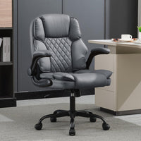 Office Desk Chair,Mid Back Executive Comfortable Pu Leather Chair,Ergonomic Home Computer Desk Chair With Adjustable Flip-Up Arms,Lumber Support Swivel Task Chair With Rocking Function