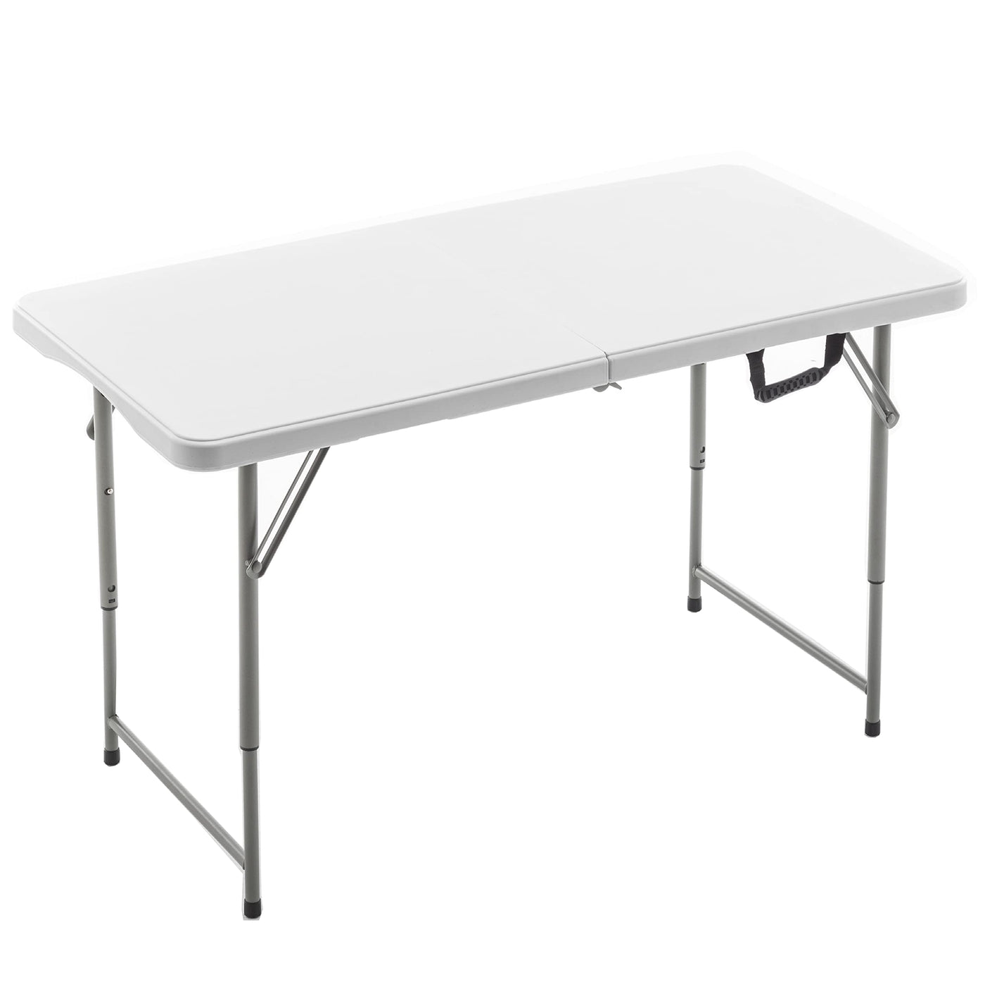 Btexpert Fold-In-Half Folding Utility Table 4 Feet Lightweight Height Adjustable Portable Carrying Handle Indoor Outdoor, Picnic Camping Office Home Party Convenient Easy To Clean Store & Care White
