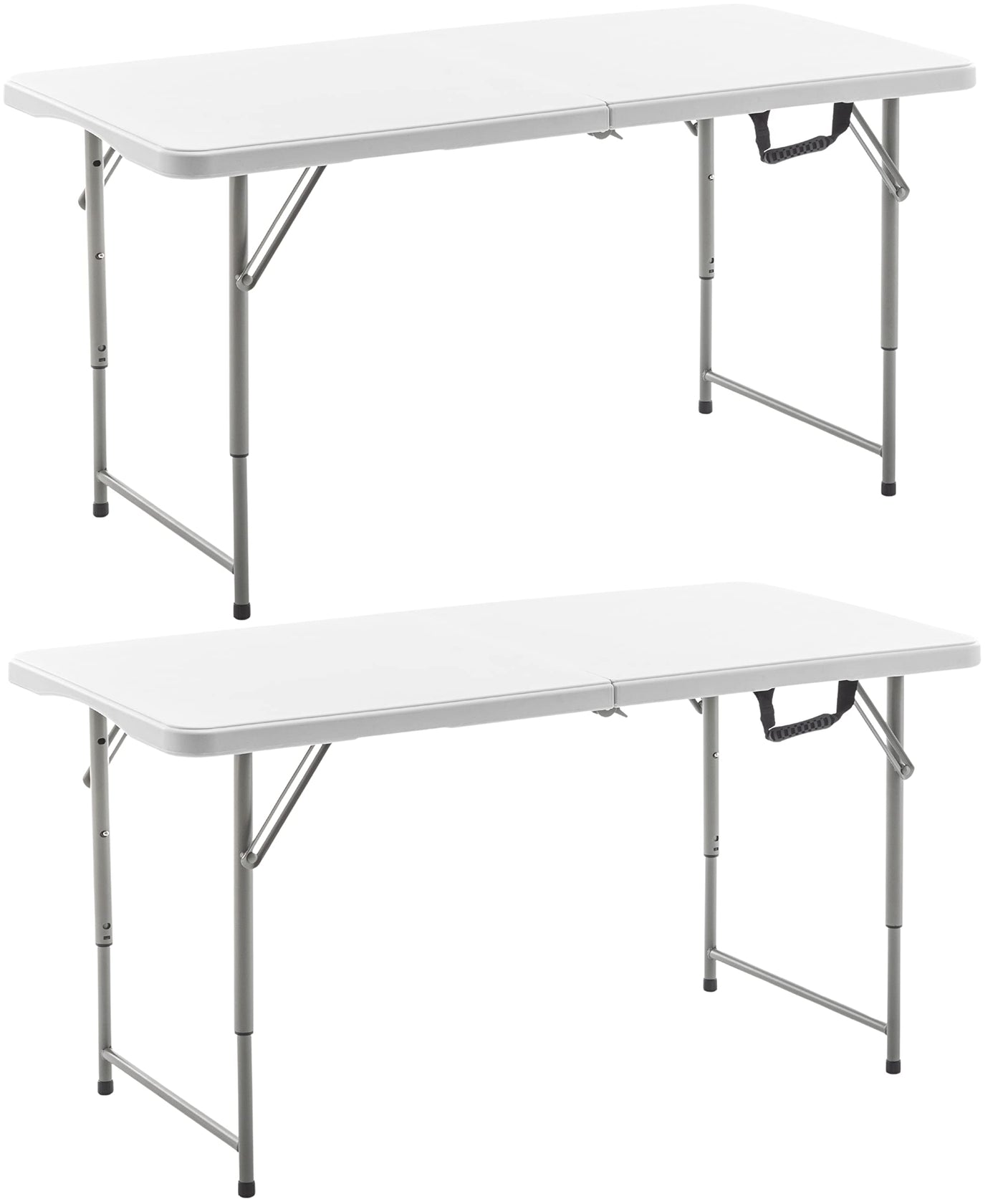 Btexpert Set Of 2, Fold-In-Half Folding Utility Table 4Feet Lightweight Height Adjustable Portable Carrying Handle Indoor Outdoor Picnic Camping Office Home Party Easy To Clean Store Care White