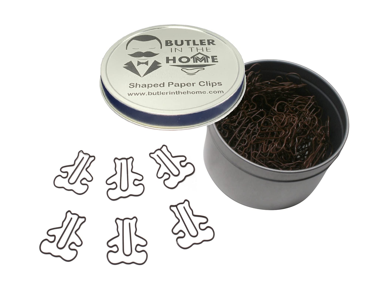 Butler In The Home 100 Count Bear Shaped Paper Clips Great For Paper Clip Collectors Or Office Gift - Comes In Round Tin With Li