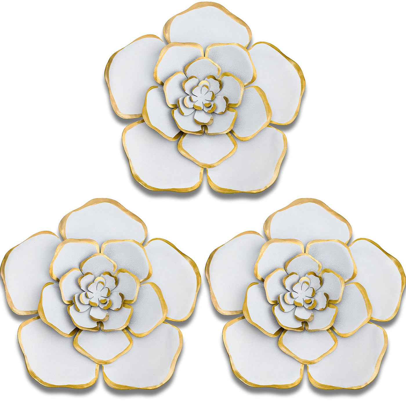 Chuangdi 3 Pieces Large Wall Metal Flowers Multiple Layer Home Decoration For Indoor Outdoor Home Garden Office Living Room Gard