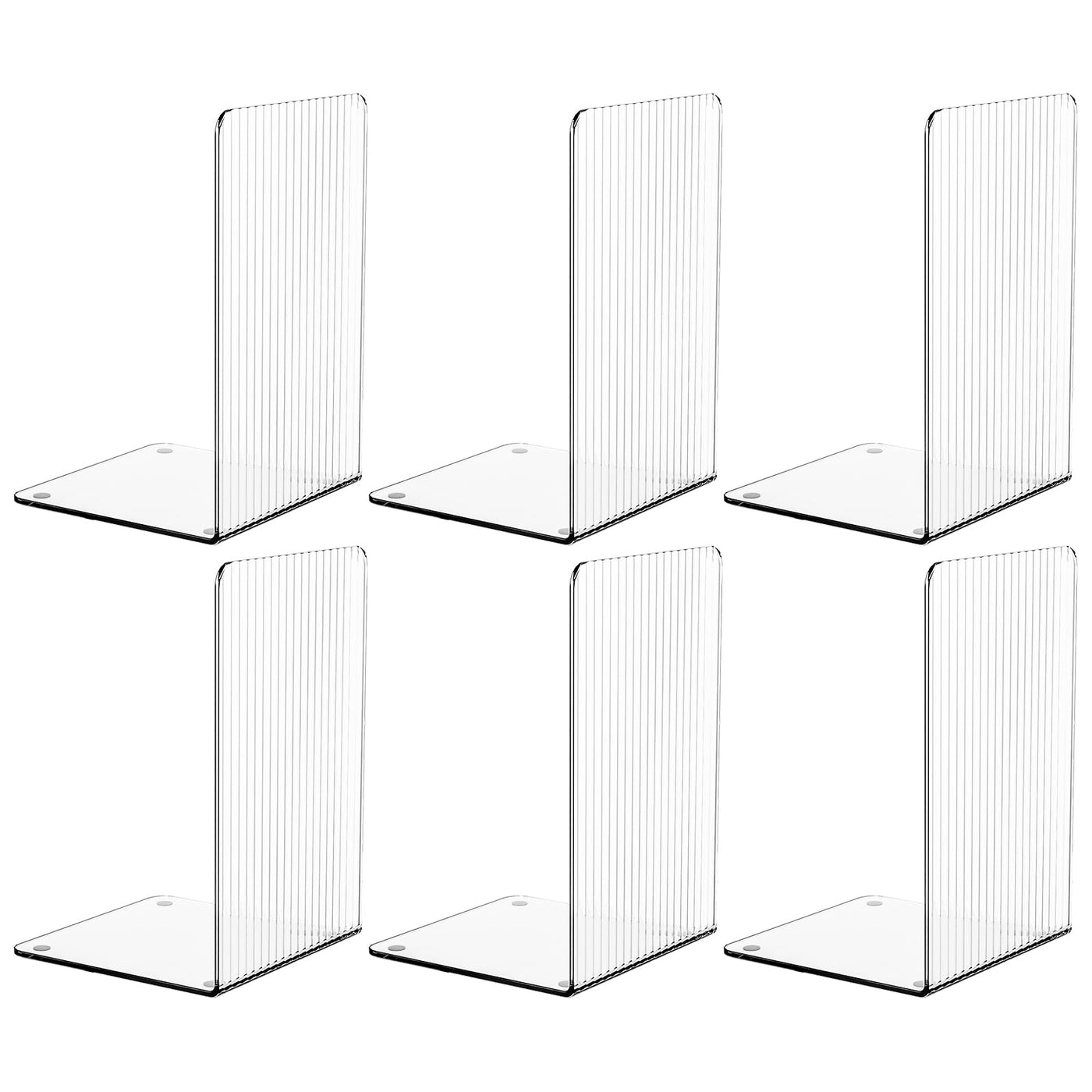 Clear Acrylic Bookends With Non-Slip Mats,6 Pcs Transparent Book Ends Organizer For Shelves,Desk,Library,Office,Book Stoppers Fo