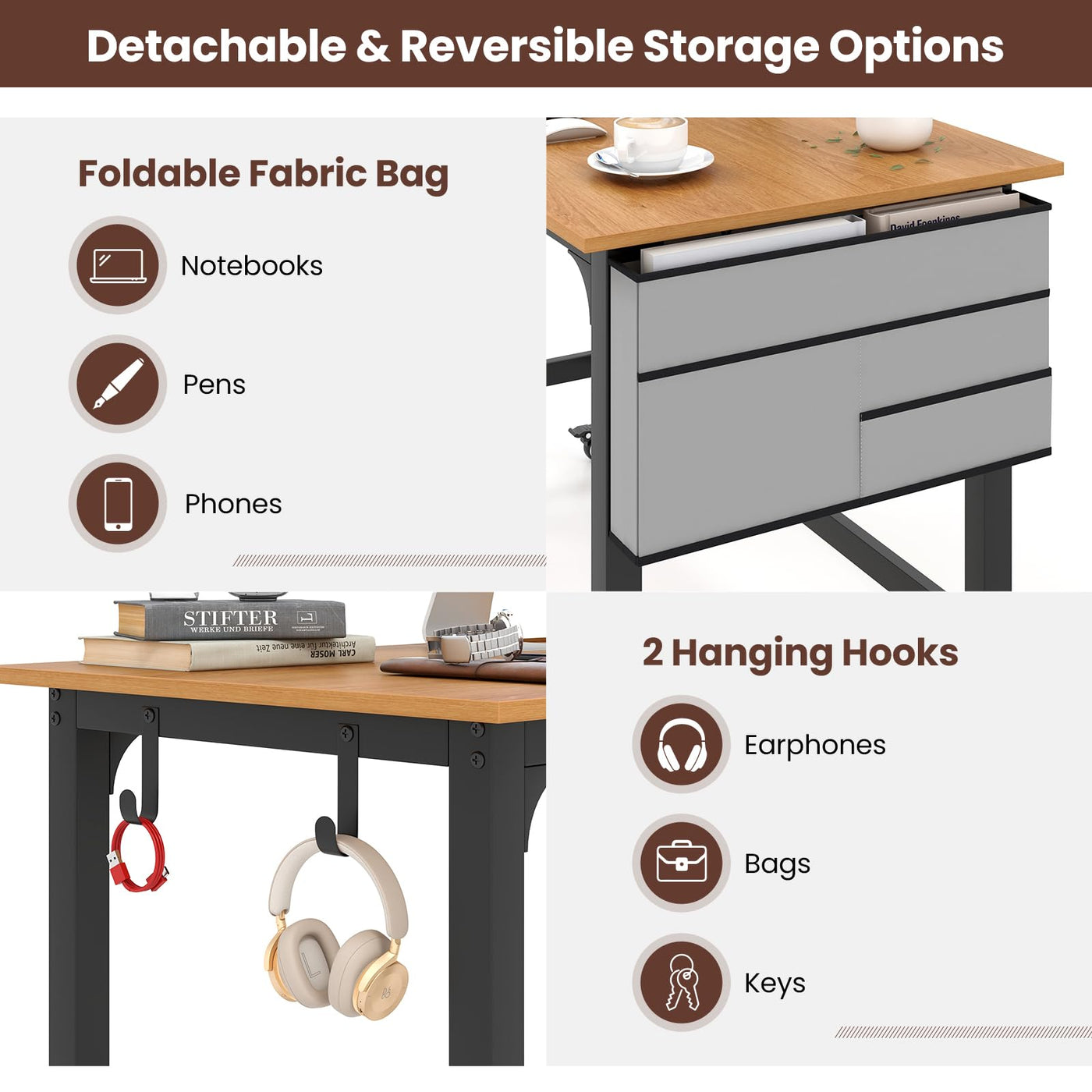 Description: Work the way you want with our 48” Rolling Computer Desk! The spacious desktop will satisfy all your daily requirements, like working, studying or gaming. The highlight is the 4 smooth universal wheels, which brings great convenience for use. As needed, you can unlock or lock 2 rotatable wheels. Besides that, the computer desk is made of carbon structural steel tubes and durable engineered board, promising a long lifespan. Whether you place it in the study, living room, or office, the simple desk on wheels will be a functional addition. Features: 48” large tabletop is applicable for work, study or game 4 universal wheels (2 with locks) for easy moving (or stop) Black carbon structural steel frame is sturdy and anti-rust Thickened engineered board ensures excellent durability Premium edge sealing prevents the corner from cracking Firm corner brackets & rear crossbar for added stability Easy to assemble with the help of illustrated instructions Color: Black / Natural + Black Material: Carbon Steel, Engineered Wood Overall Dimension: 48” x 24” x 30” (L x W x H) Thickness of Desktop: 0.7” Size of Metal Tube: 1.6” x 1.6” (L x W) Max Load Capacity: 210 lbs Net Weight: 37 lbs Package Includes: 1 x Study Writing Desk 1 x User’s Guide Note: The color of tabletop may show differently in different devices and lightings.