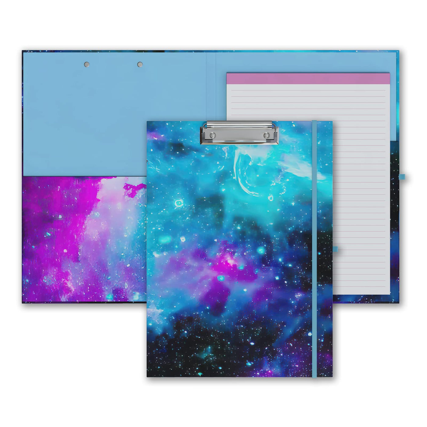 Cute Clipboard Folio With Refillable Lined Notepad And Interior Storage Pocket For Office Stylish A4 Foldable Clipfolio - Nebula