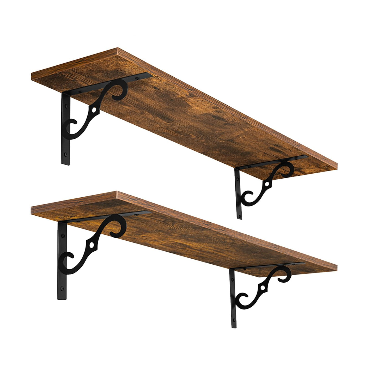 Features: Expand Storage Spaces: A Few Simple Ledges Will Turn Any Wall Into A Real Eye-Catcher And Charming Space. Longer And Wider Ledges Bring More Possibilities For Wall Display. Add Finishing Touch To Your Space:Mid-Century Design Adds A Retro-Chic Vibe To Your Home. Rusticity Wood Grain, Exquisite S-Shaped Iron Brackets Exude A Sense Of Nostalgia And Romance. The Pinnacle Of Industrial And Vintage Furniture Flaunts Visual Interest And Enhances The Texture Of The Space. The Clear Wood Grain Combines Natural Atmosphere With Artistic Appeal. Well Made: The High-Quality Particleboard Frame And Thickened Iron Brackets Add Stability And Stronger Load-Bearing Capacity. Classy S-Shaped Brackets Hold The Wooden Shelves Without Deformation Over Time. Fine Finish And Edge Banding Ensure The Surface Safe And Smooth Without Barbs. Assemble Is A Piece Of Cake: Easy To Read Instruction And High Quality Accessories Make Installation Easier. Two Types Of Expansion Screws Are Provided For Different Wall Materials. Unobstructed Design Of Metal Brackets Allows You Got The Screw In Effortlessly. Age With Grace In Any Setting: A Classy Way To Display Your Beloved Decorations In Your Living Room And Bedroom. Store Toiletries, Cosmetics And Scented Candle In Bathroom. Keep Your Kitchen Tidy By Holding Your Spices And Tableware With These Charming Storage Ledges. Use Them To Build A Flower Wall And Make The Balcony Full Of Life And Fragrance. Combines Natural Texture And Practicality To Store Your Books In Office Or Study Room. Specifications: - Color: Rustic Brown - Material: Particleboard & Metal - Dimension: 23.6'L X 7.9'W X 6.1'H (60 X 20 X 15.5 Cm) - Max.Static Load Capacity: 22Lb (10Kg)
